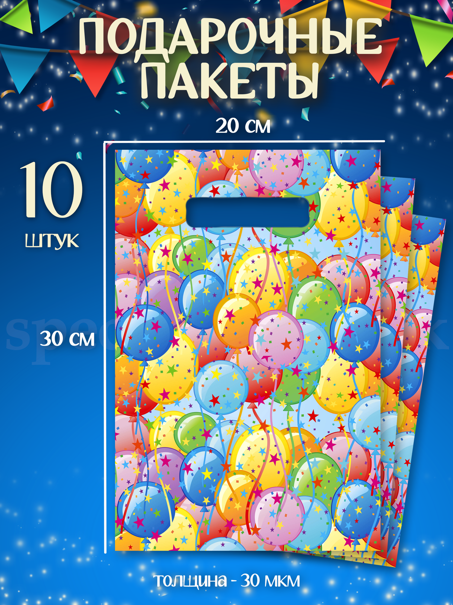Набор подарочных детских пакетов с ручками, 30 шт, 20х30 см, "Шарики" Marsel Home упаковка детям в детский сад школу