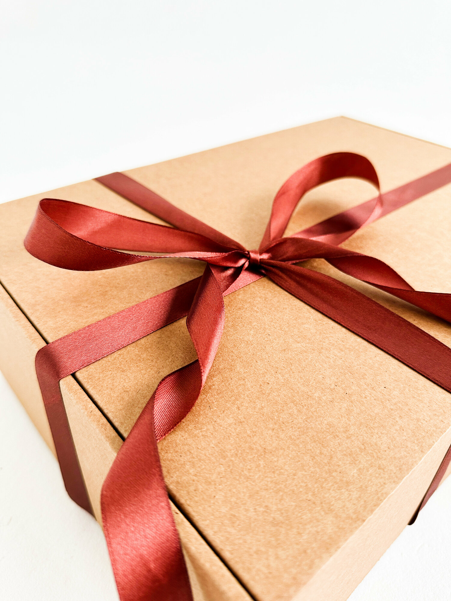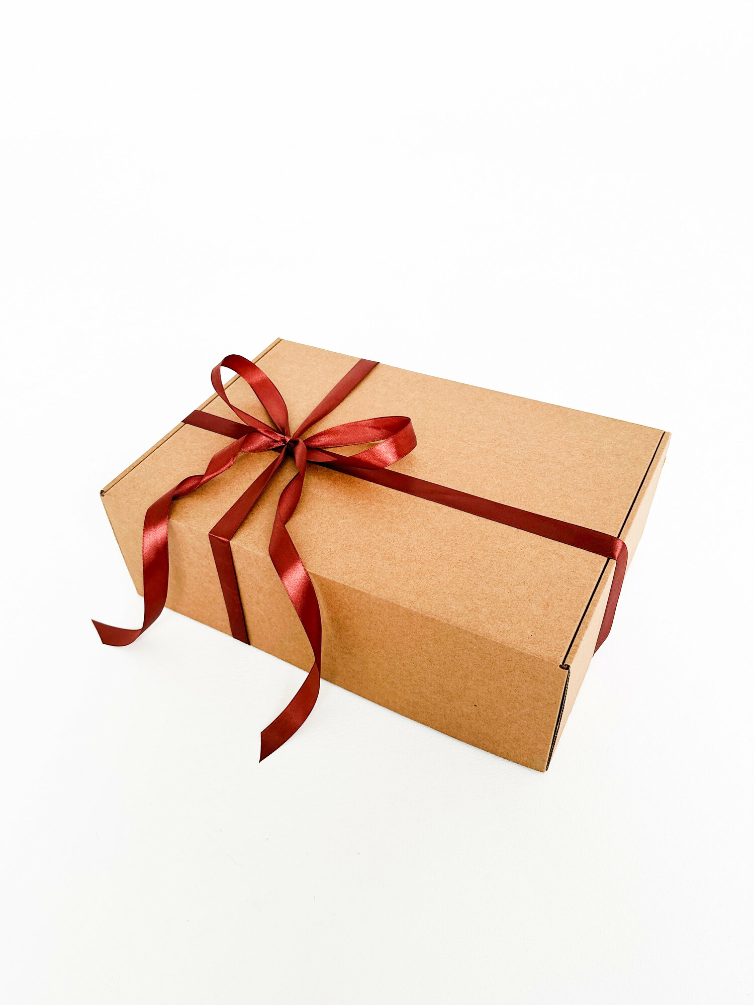 Купить Подарочная коробка GILEV 32x22x10см с наполнителем и коричневой лентой