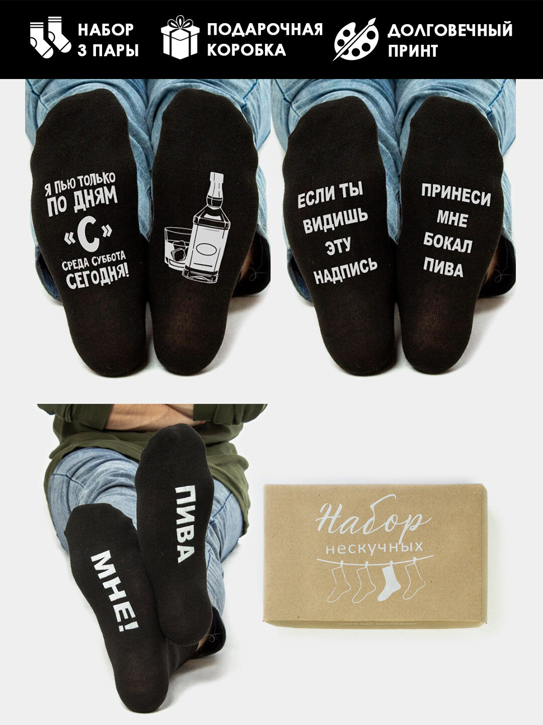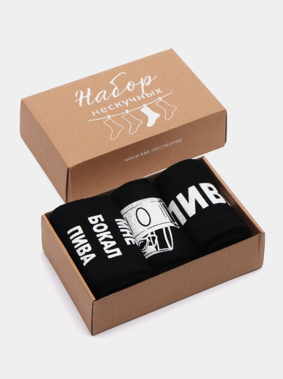 Купить Подарочный набор 3 пары мужских носков с принтом Люблю пиво