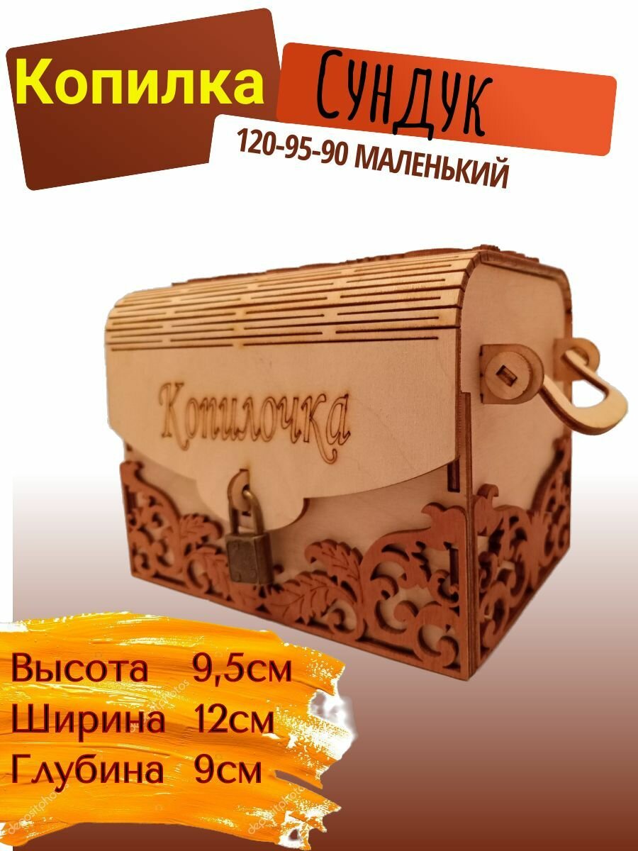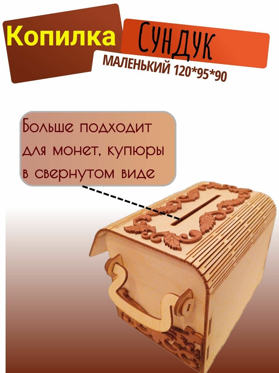 Копилка для денег "Копилочка" в форме сундучка 120 х 95 х 90 мм из дерева, с вензелями интересное: