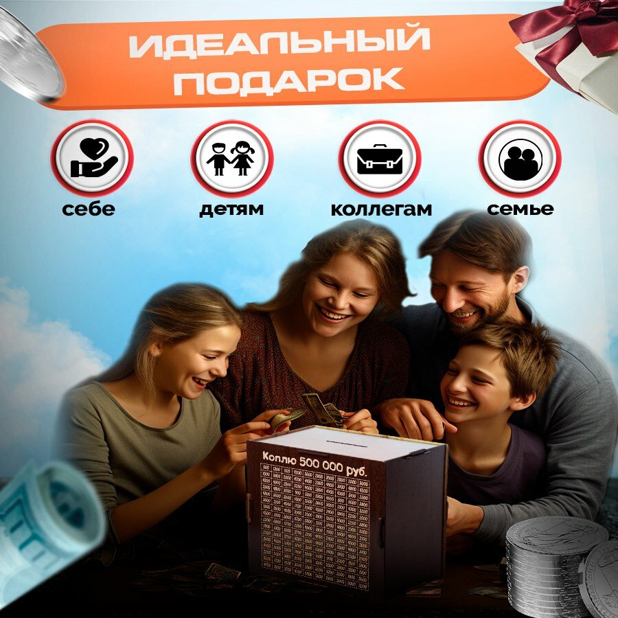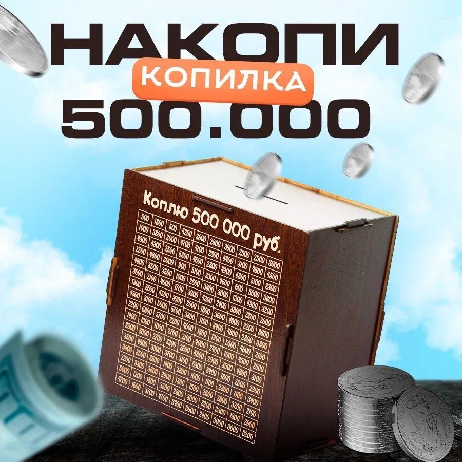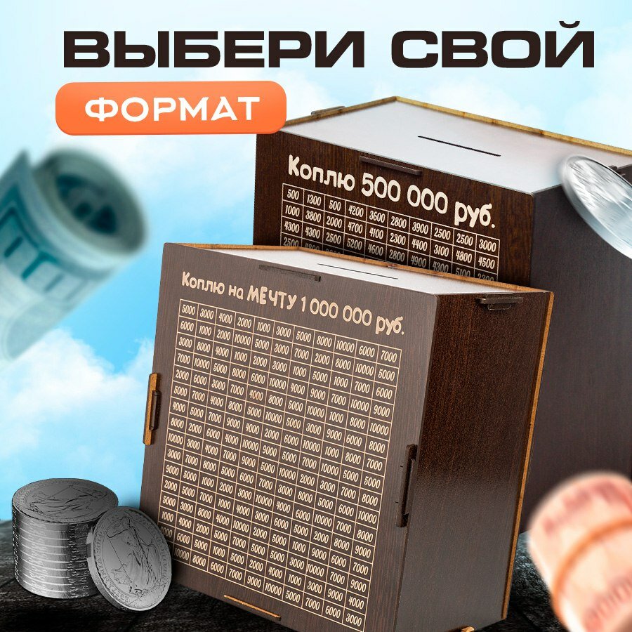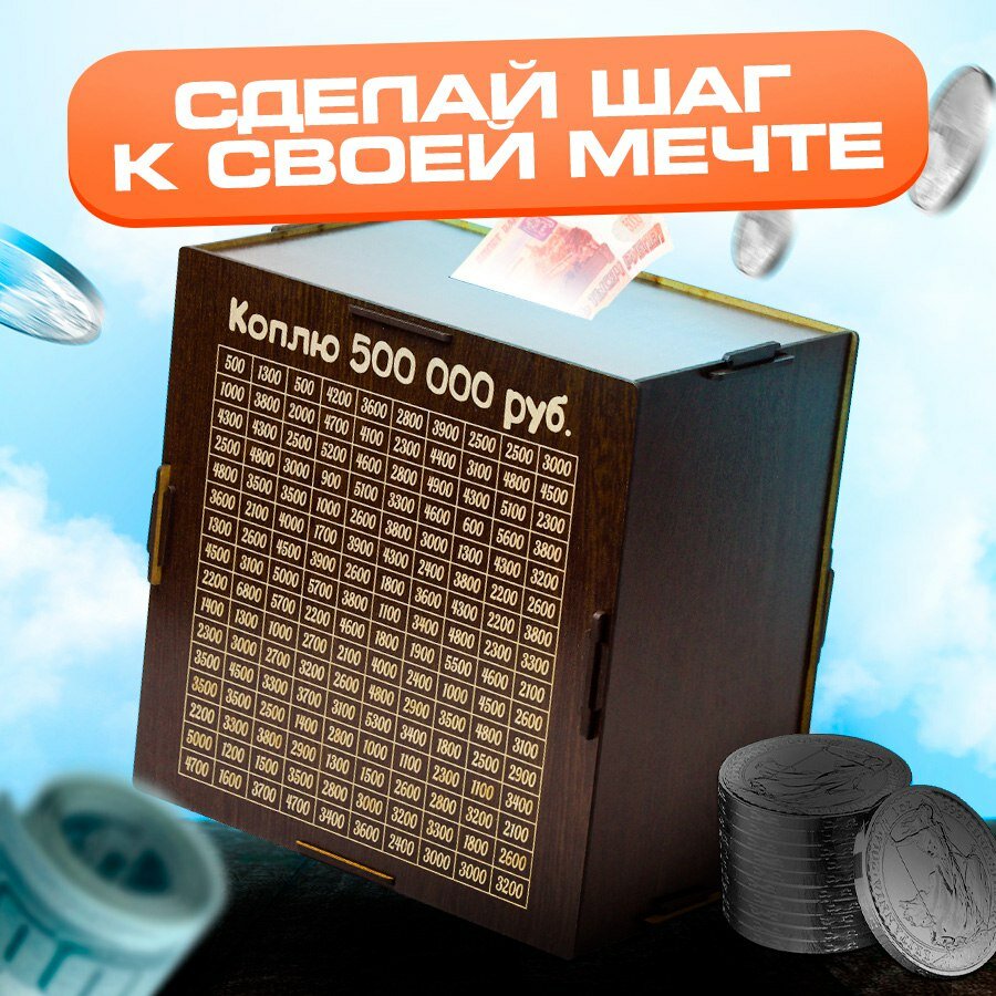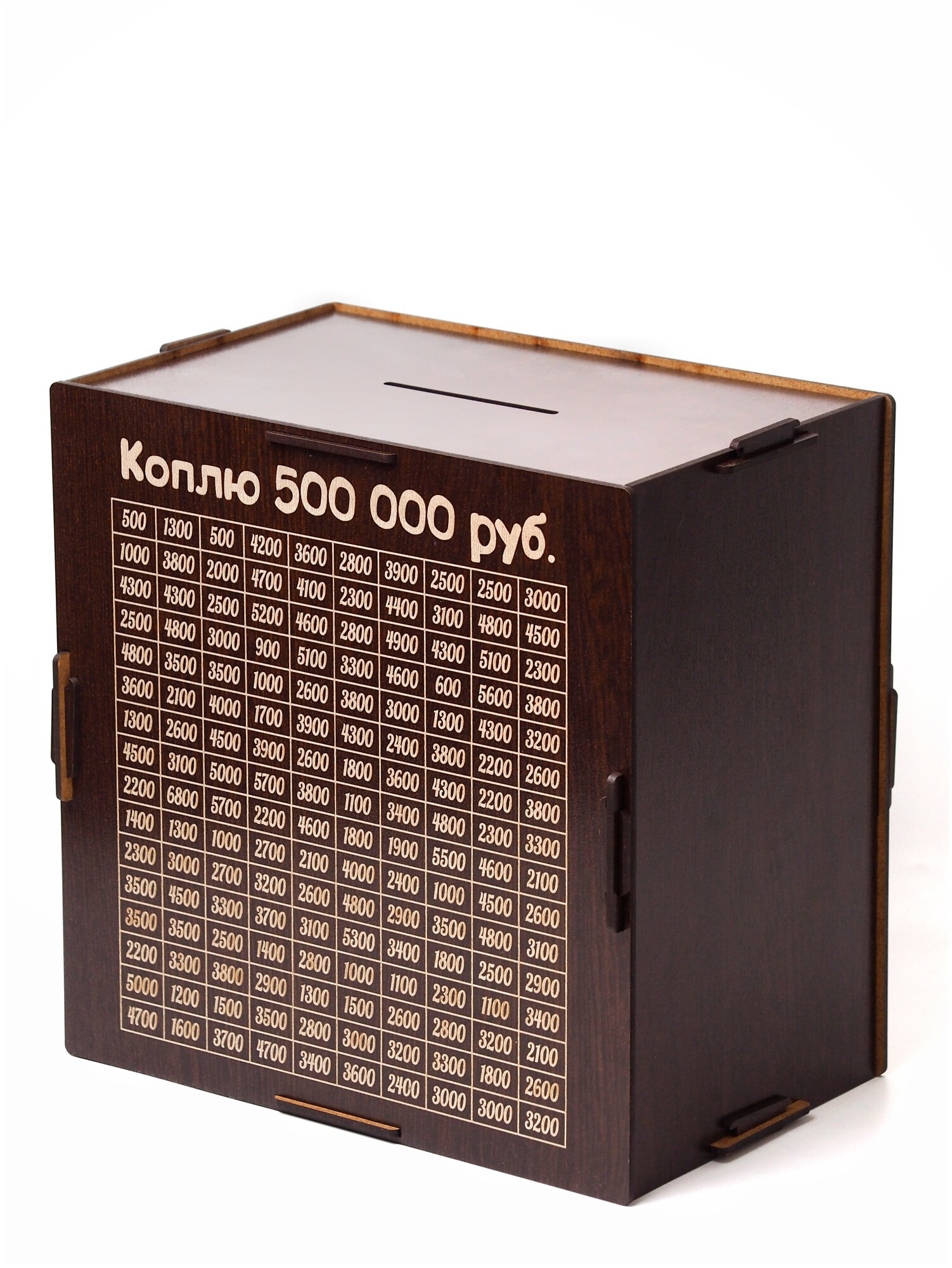 Купить Копилка для денег деревянная с цифрами для зачеркивания на мечту на 500.000