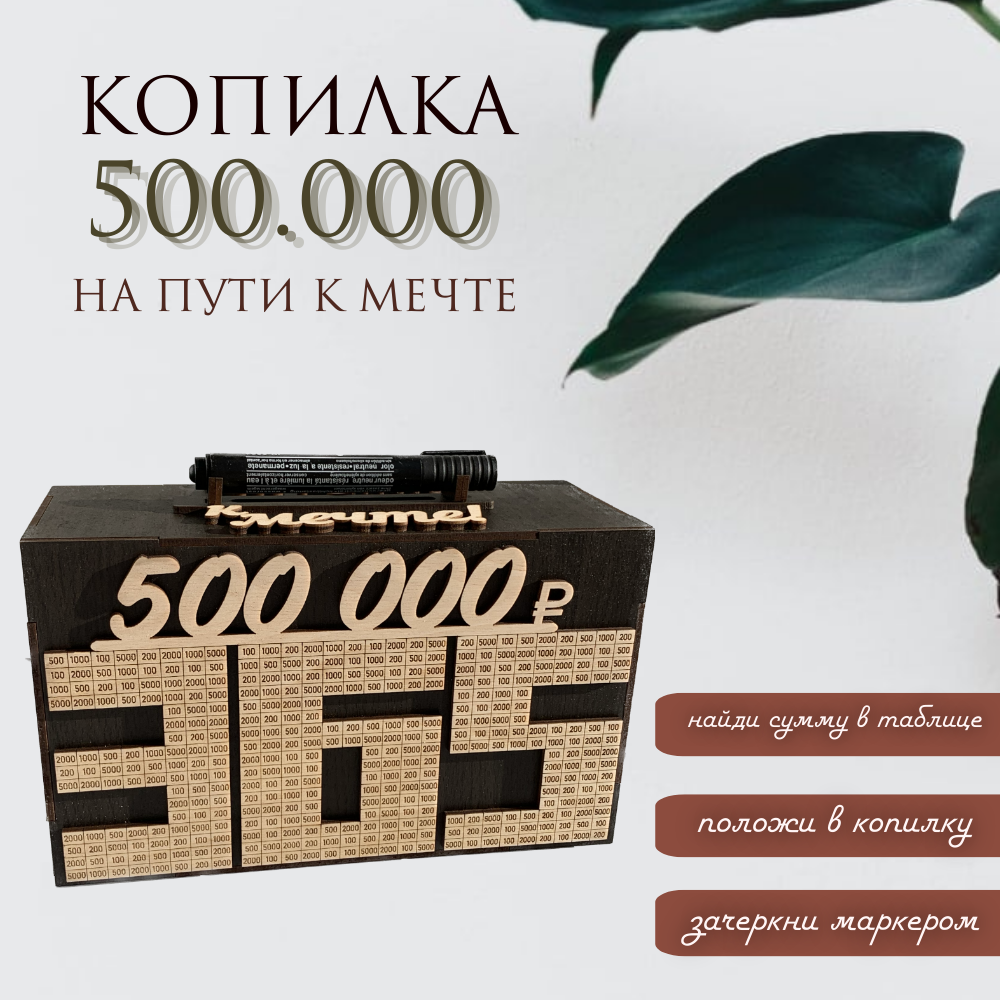 Копилка для денег " 500 000" , неразборная, 25x15 см, 1 шт интересное:
