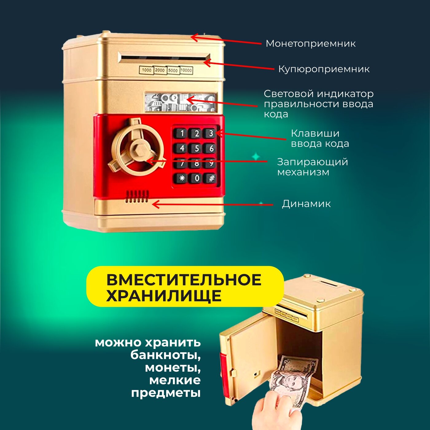 Интерактивная копилка сейф-банкомат c купюроприемником интересное: