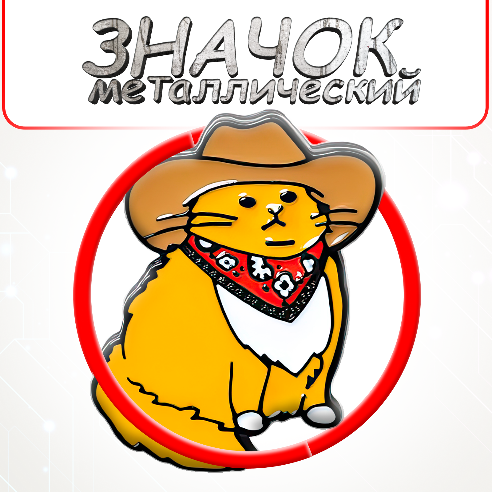 Купить Металлический значок, пин - pin, брошь "Кот в шляпе, ковбой" на рюкзак, куртку, рубашку, одежу, прикольная брошь