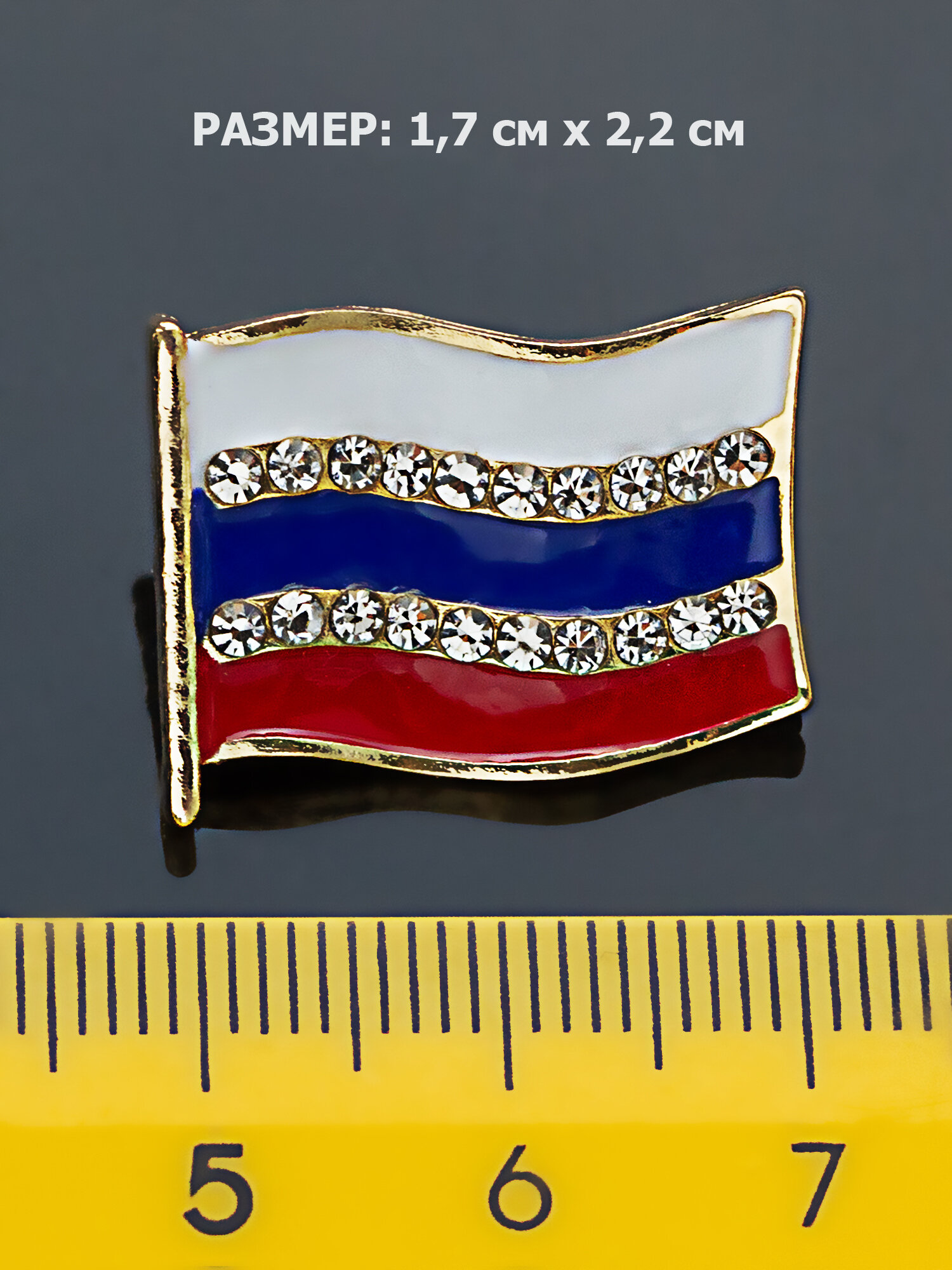 Купить Значок флаг России со стразами. Украшение для сумки, рюкзака, шапки. Брошка триколор. Булавка. Цвет золото.