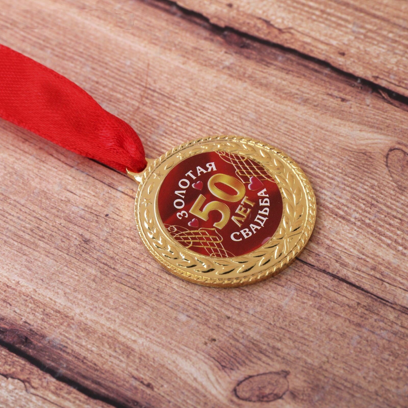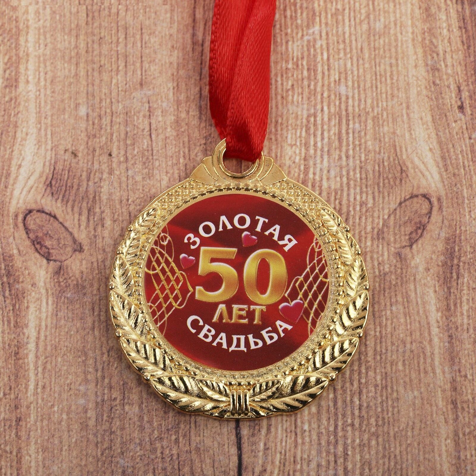 Купить Медаль юбилейная подарочная "50 лет золотая свадьба", диам - 4 см