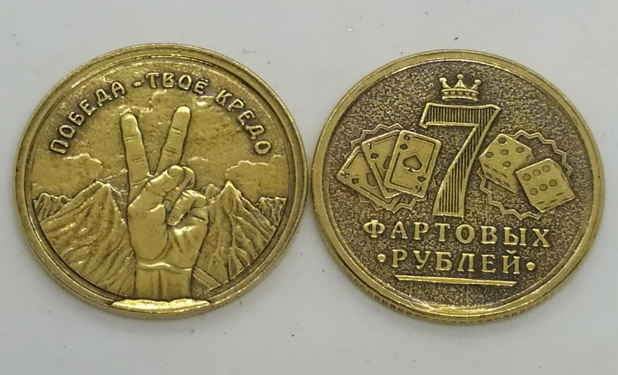 Купить Монета сувенирная " 7 Фартовых рублей/победа"