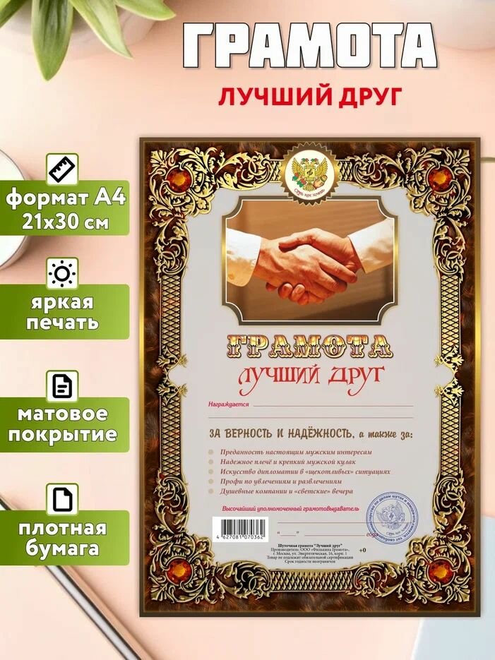 Ниже Вы можете прочитать отзывы на Грамота открытка поздравительная Лучший друг А4, в подарок, ознакомится с подробными характеристиками, посмотреть интересные обзоры и фотографии на Грамота открытка поздравительная Лучший друг А4, в подарок.