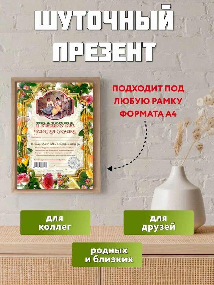 СохранитьГрамота открытка для награждения Чудесная соседка, А4 интересное: