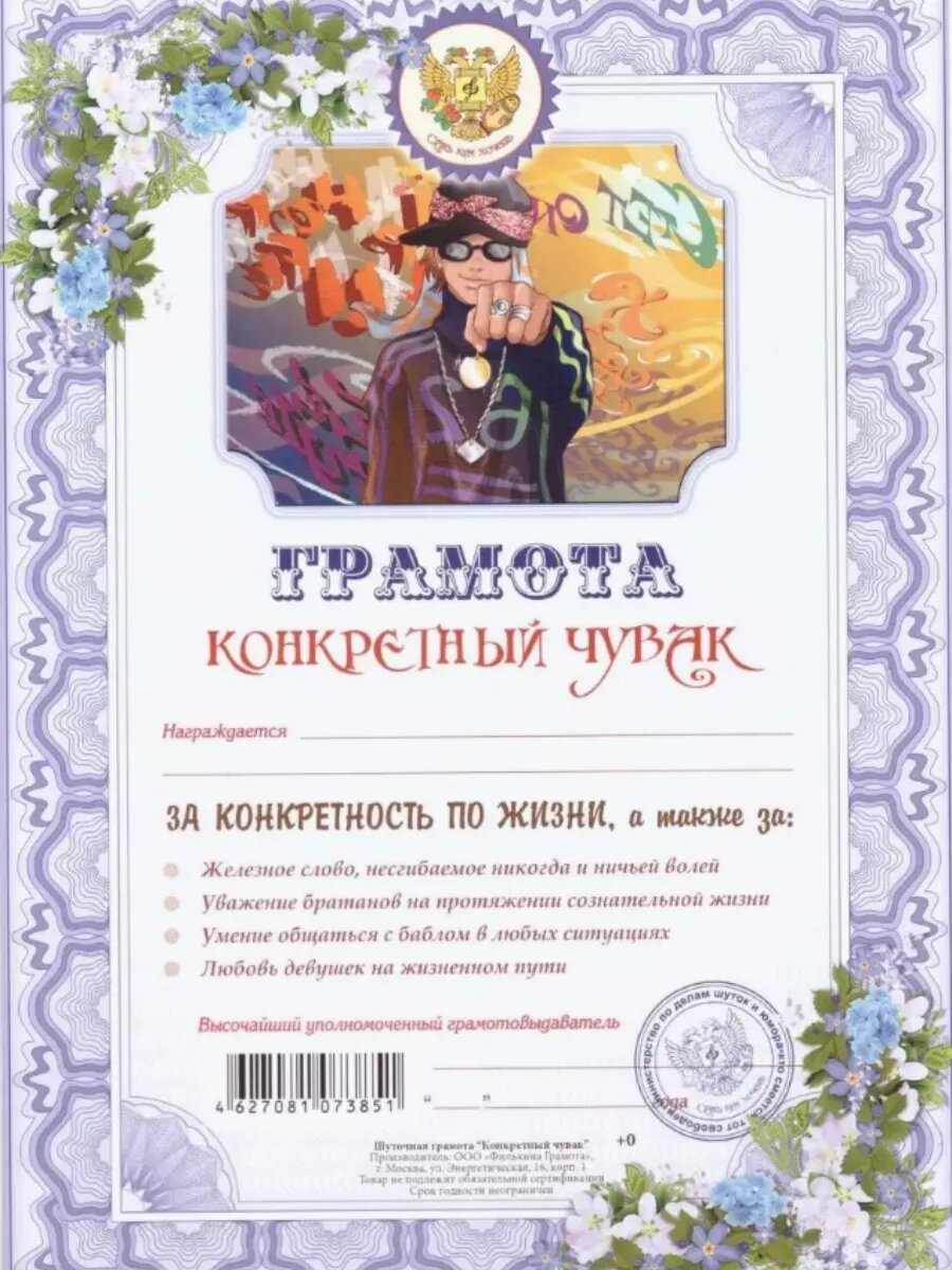 Купить Грамота открытка поздравительная Конкретный чувак А4, в подарок