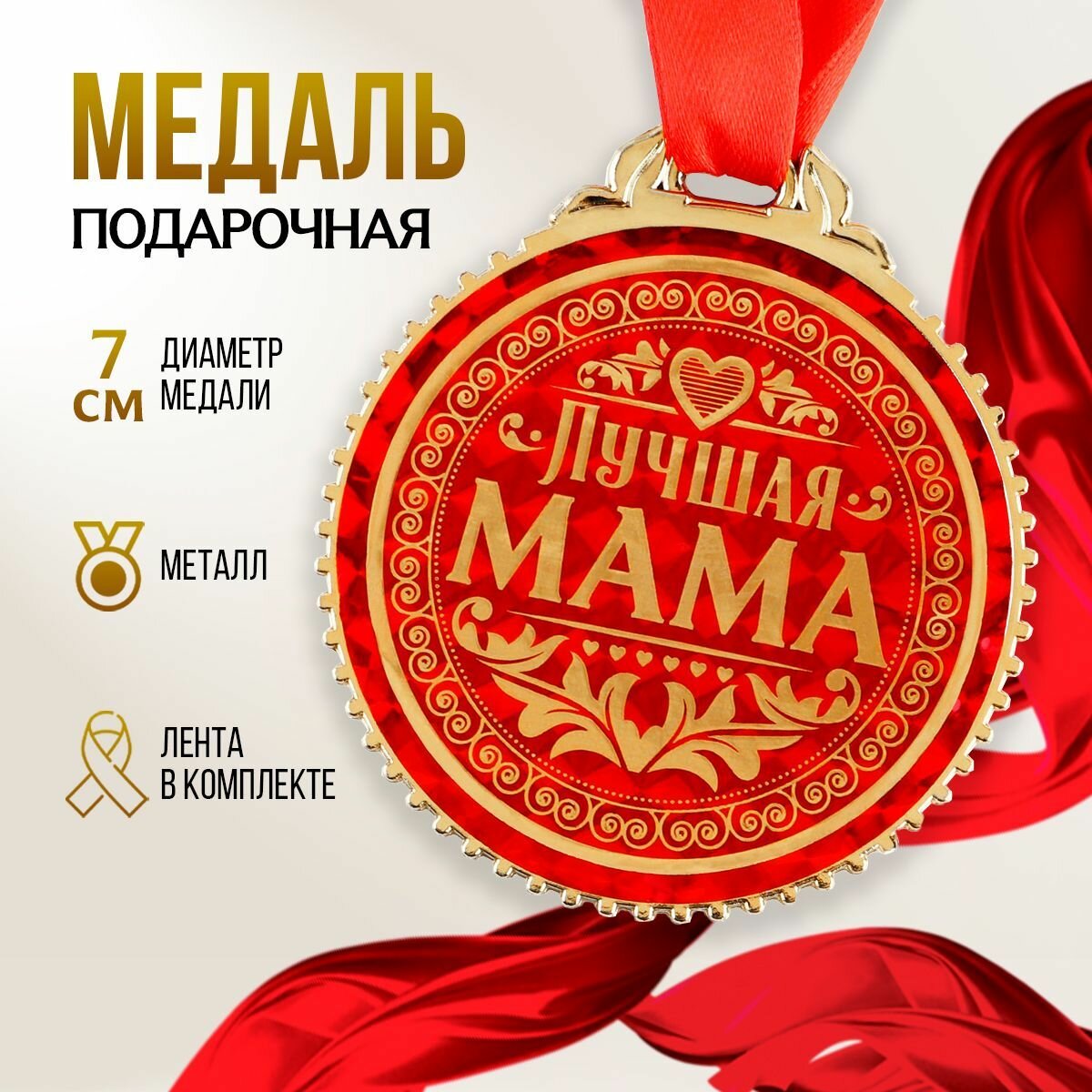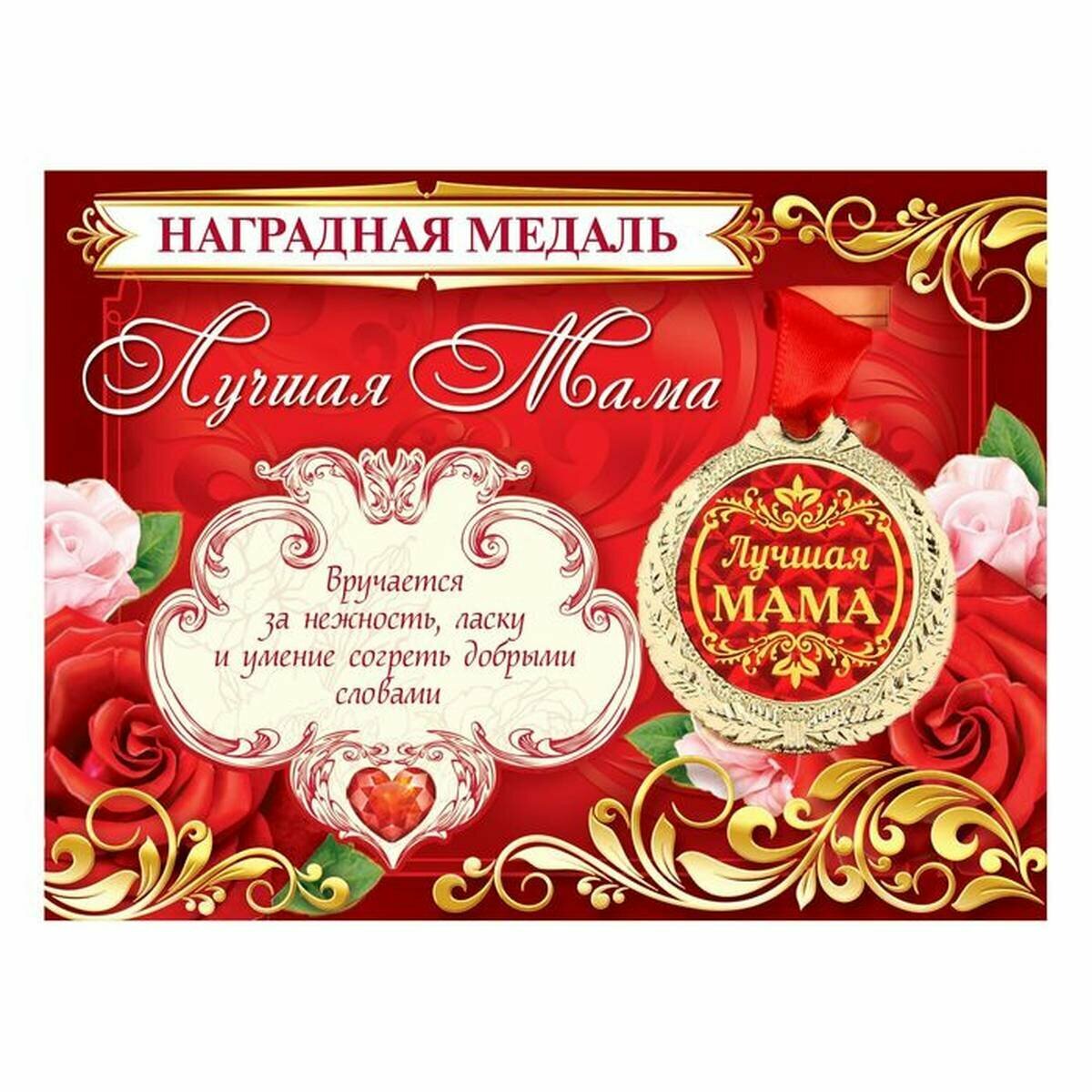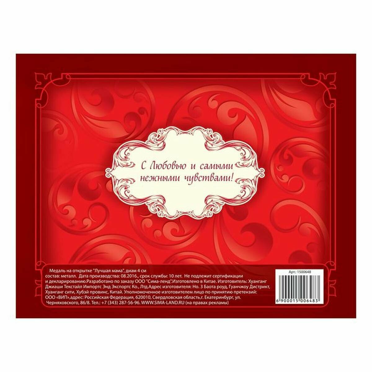 Медаль на подарочной открытке "Лучшая мама", d=7 см интересное: