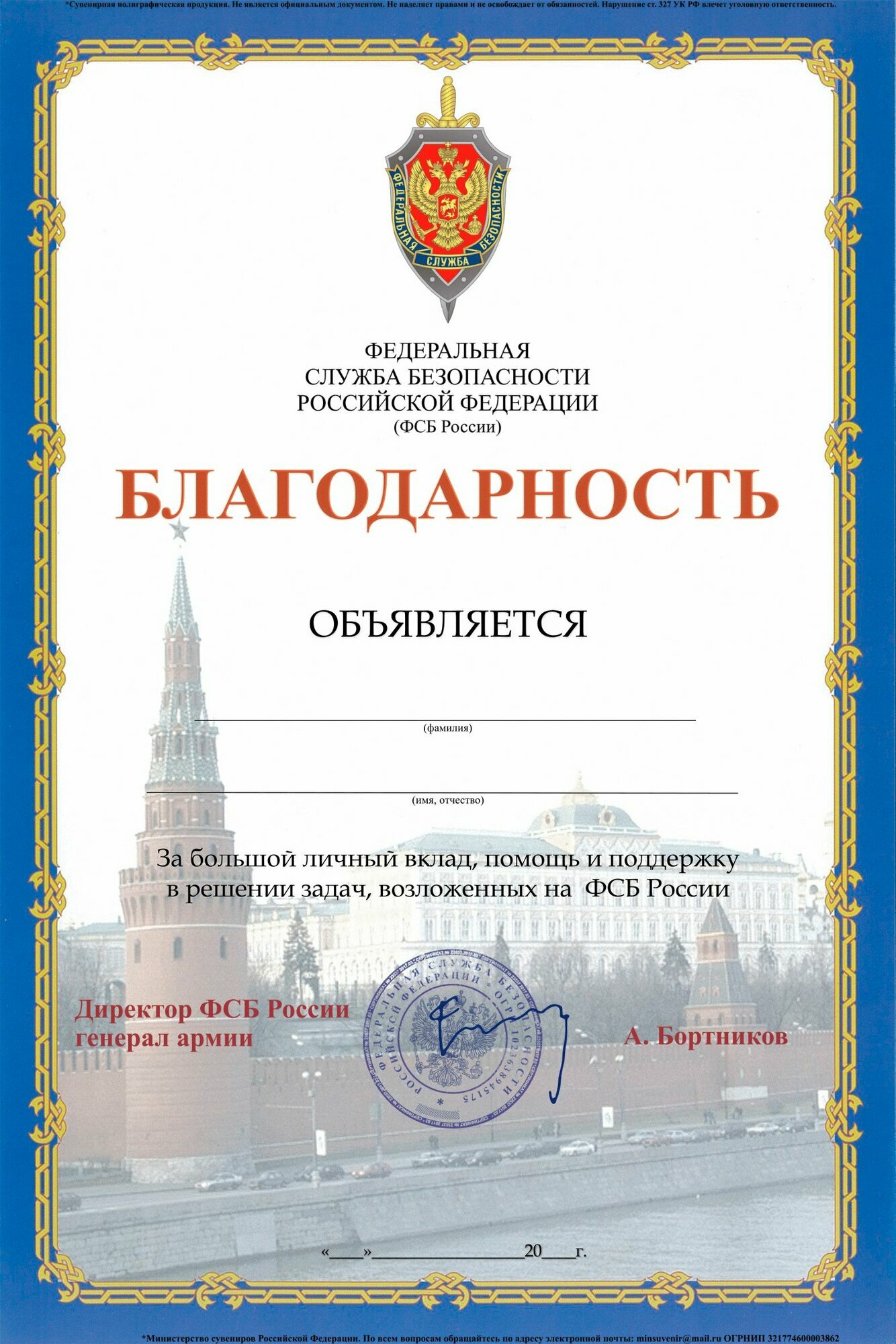 Купить Благодарность от ФСБ России