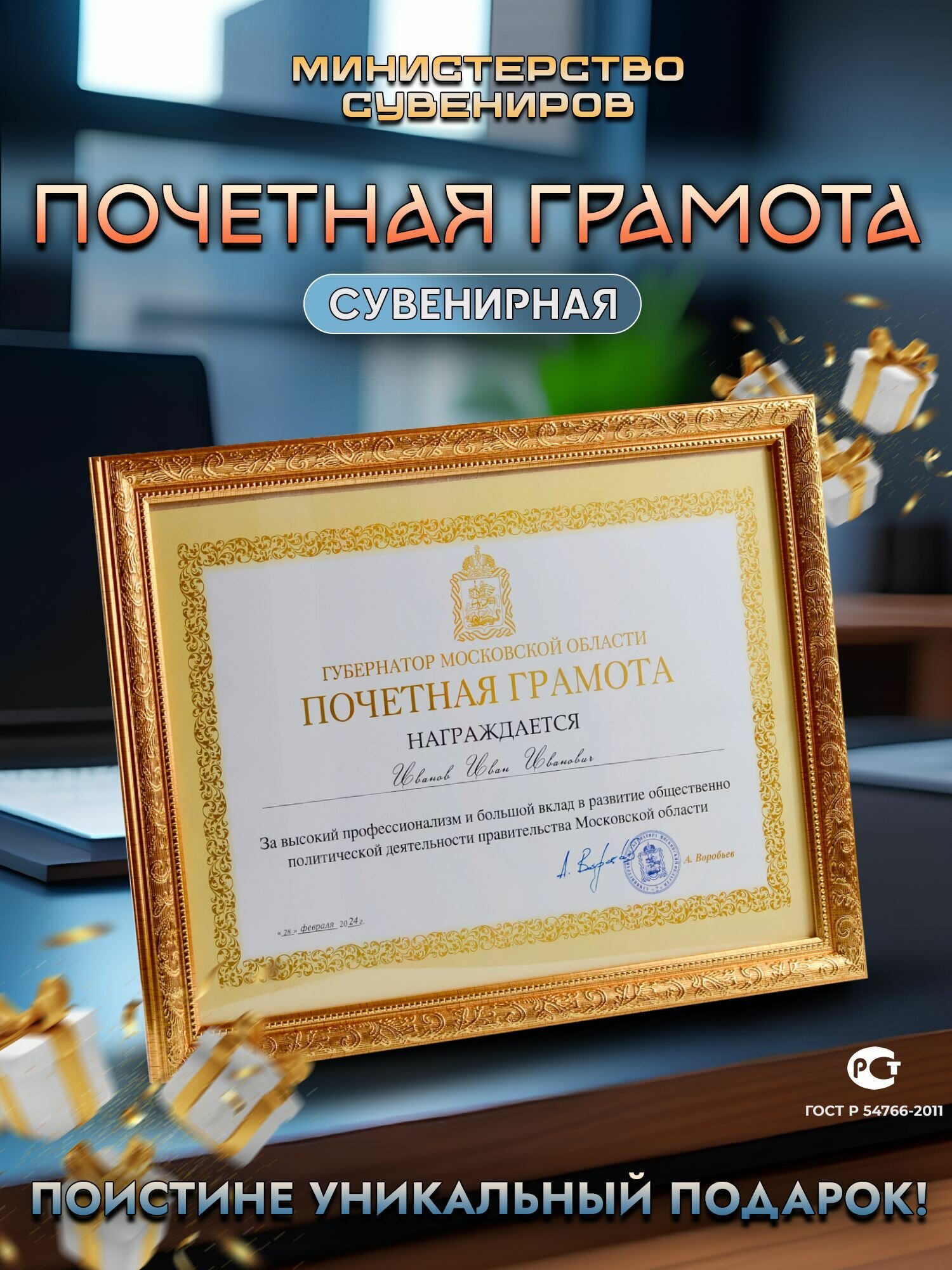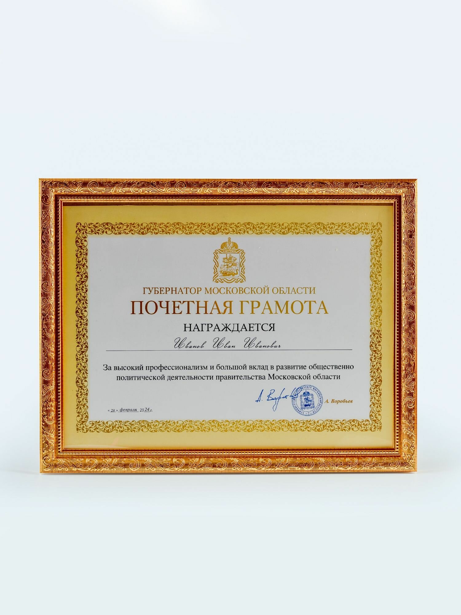 Купить Почетная грамота от Губернатора Московской области подарок руководителю