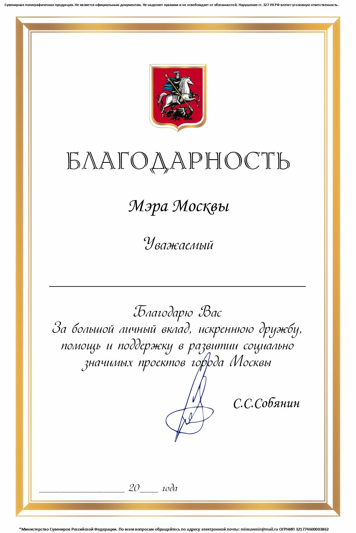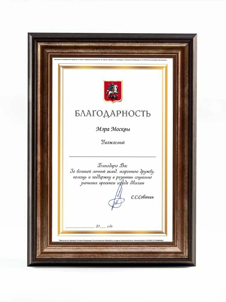 Купить Благодарность от Мэра Москвы