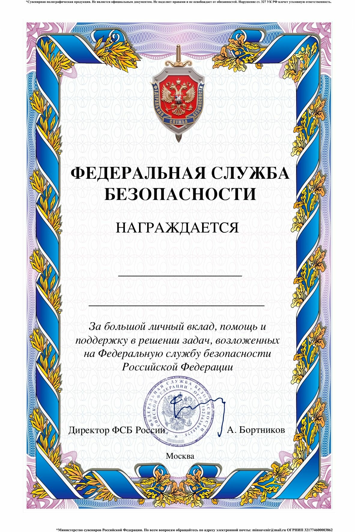 Купить Почетная Грамота ФСБ РФ