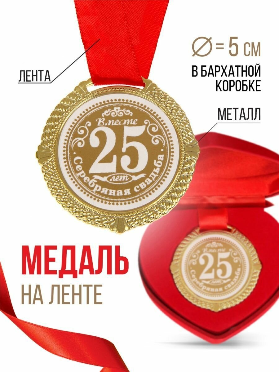 Купить Медаль подарочная юбилейная в бархатной коробке "Серебряная свадьба. 25 лет вместе", диам. 5 см