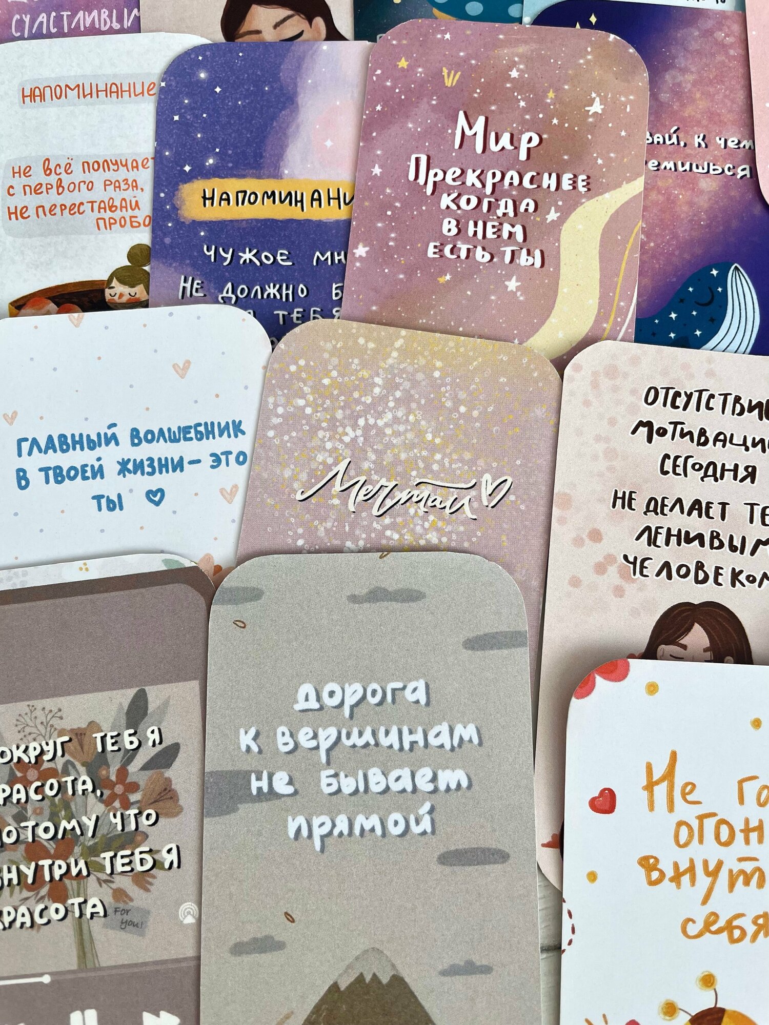 Мини открытки/ карточки мотивационные в коробочке /20штук/открытки поздравительные в коробке /11х7