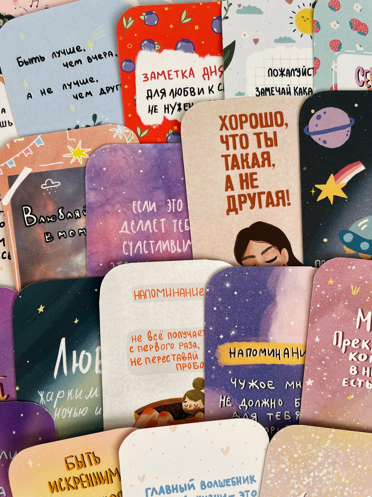 Мини открытки/ карточки мотивационные в коробочке / 40 штук/открытки поздравительные в коробке /11х7