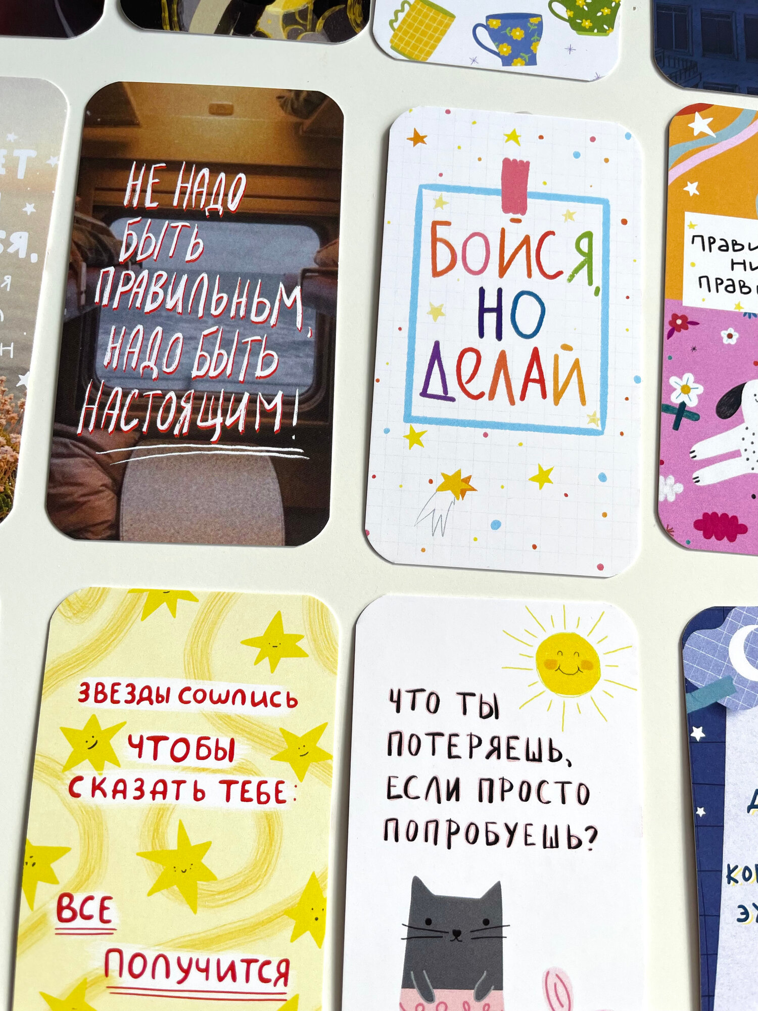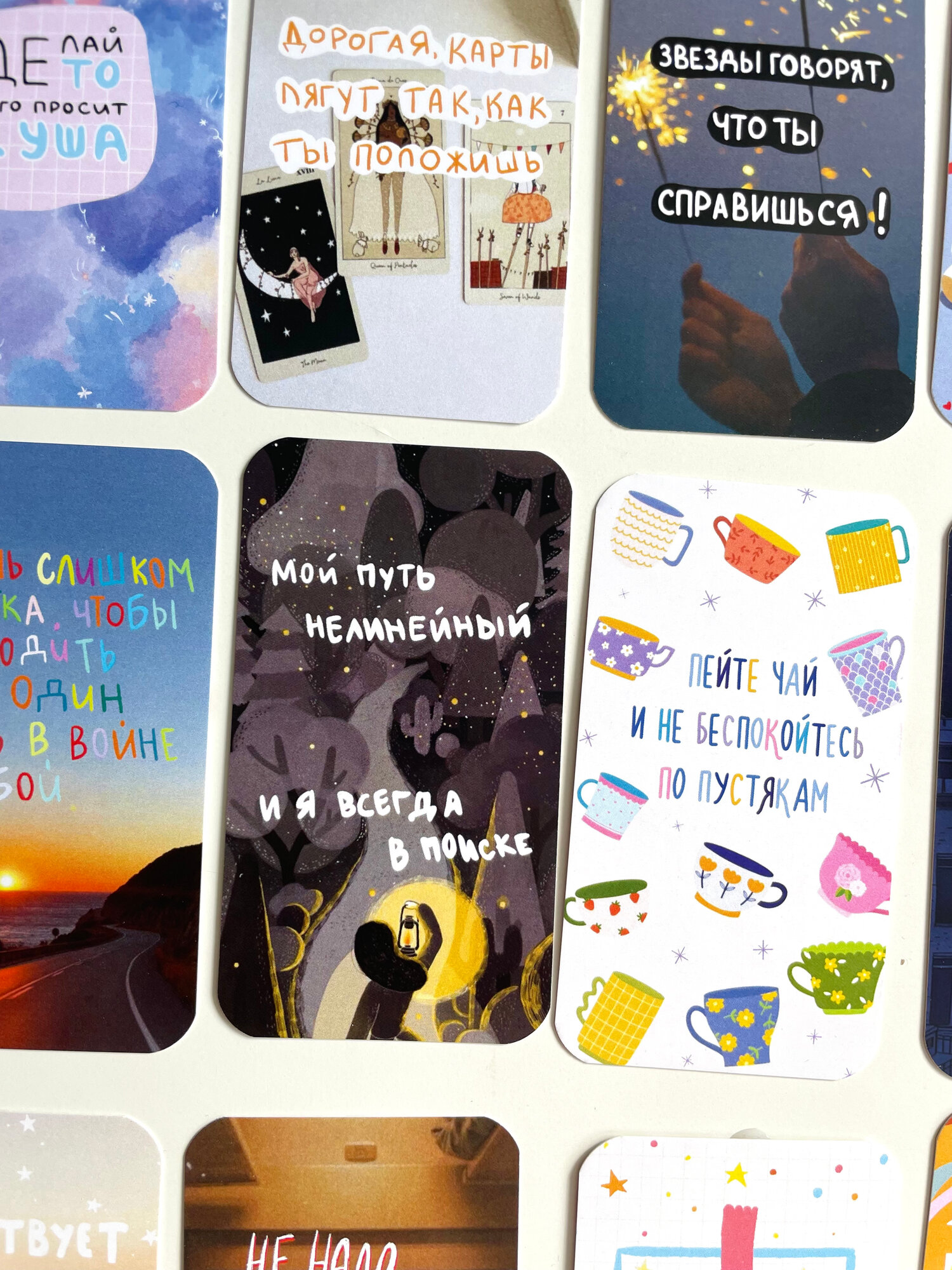 Мини открытки/ карточки мотивационные в коробочке / 40 штук/открытки поздравительные в коробке /11х7