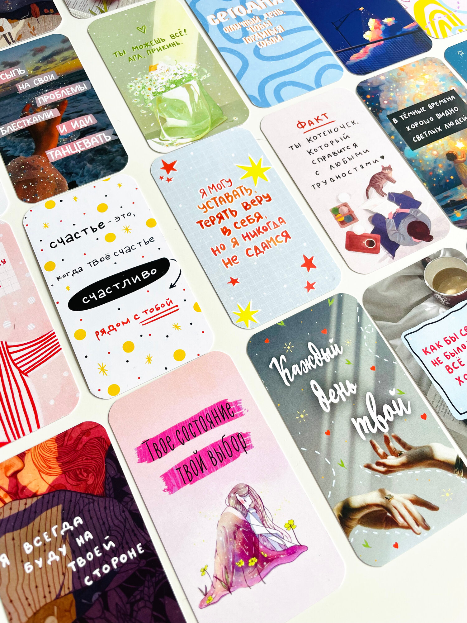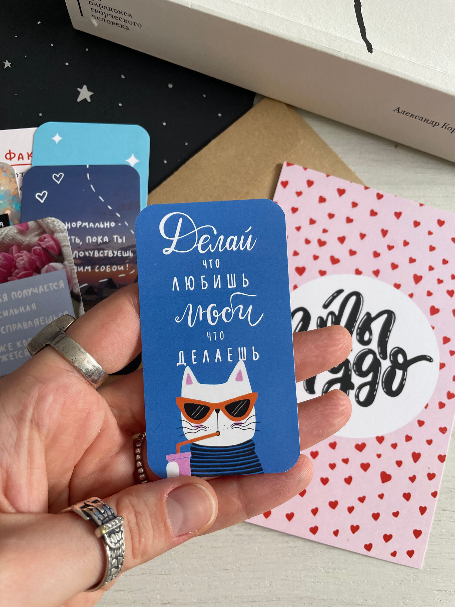Мини открытки/ карточки мотивационные в коробочке /20штук/открытки поздравительные в коробке /11х7