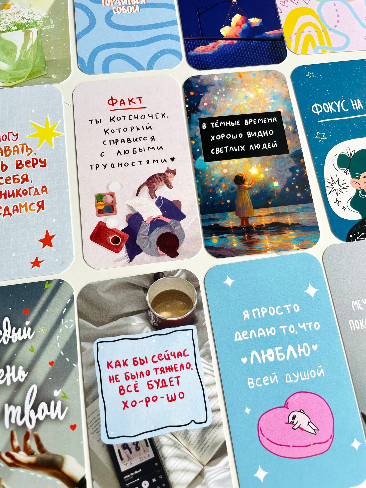 Мини открытки/ карточки мотивационные в коробочке / 40 штук/открытки поздравительные в коробке /11х7