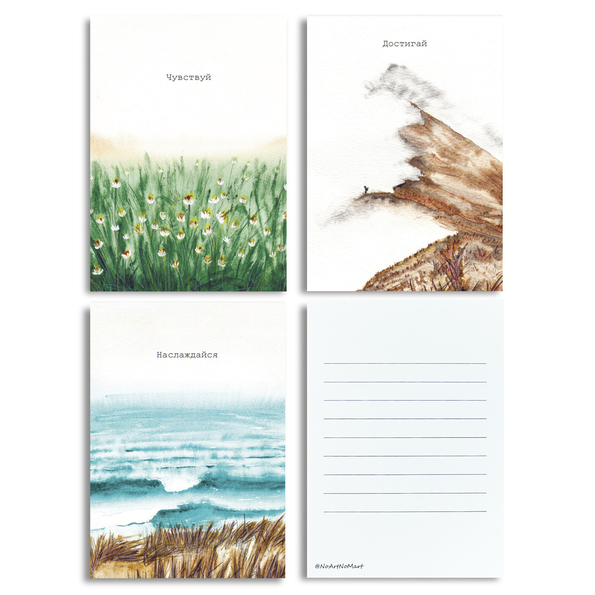 Купить Набор акварельных открыток "Чувствуй", "Наслаждайся", "Достигай" 3 шт. 14,8 * 10,5 см