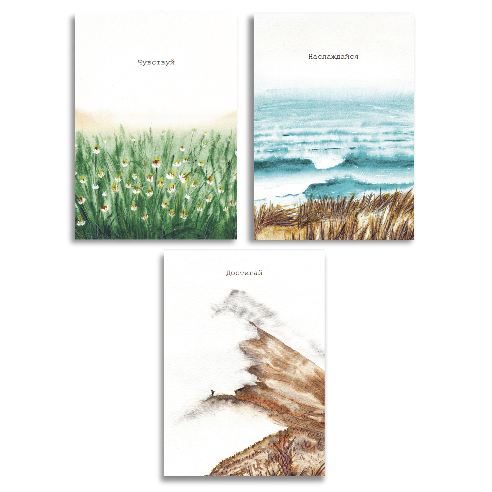Набор акварельных открыток "Чувствуй", "Наслаждайся", "Достигай" 3 шт. 14,8 * 10,5 см интересное: