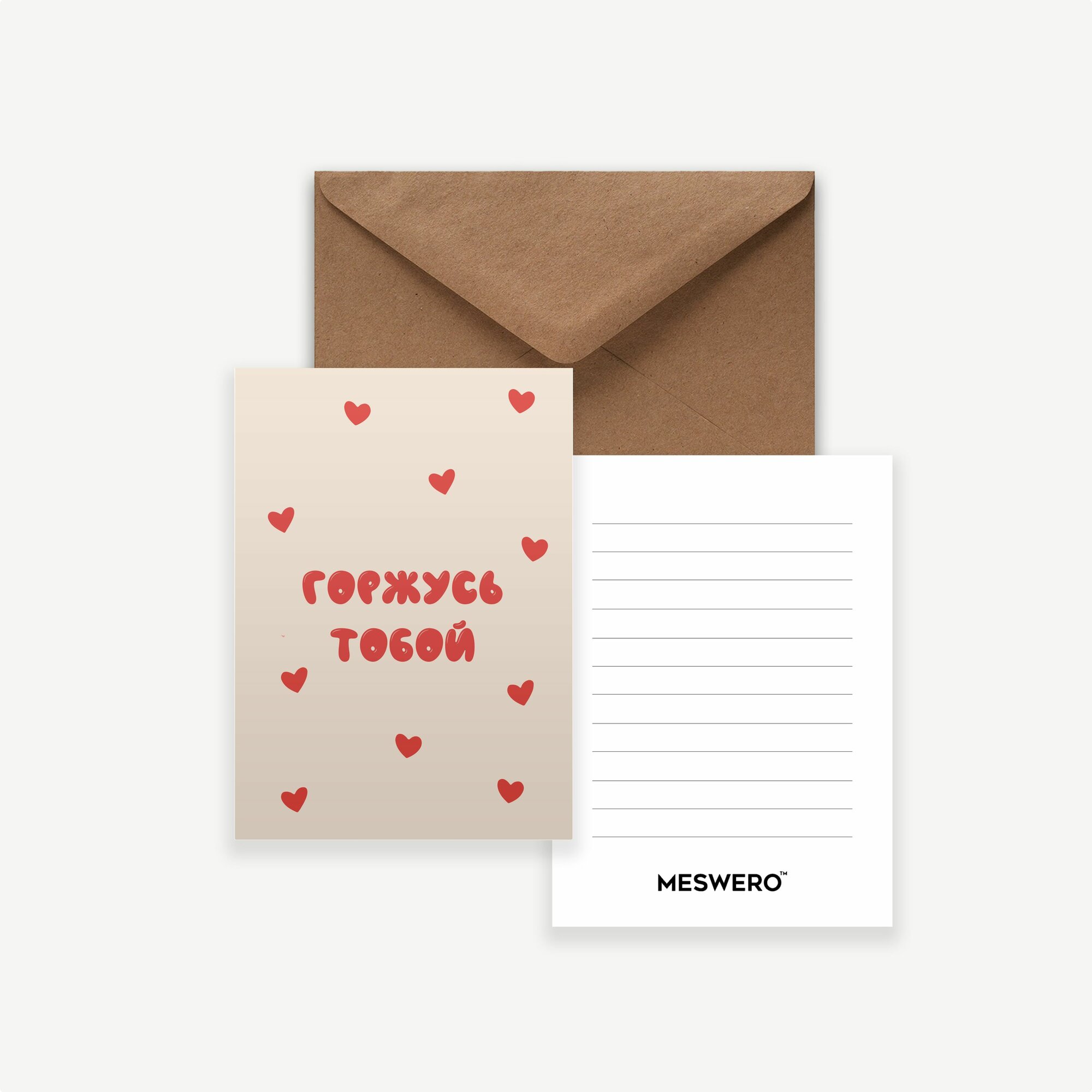 Дизайнерская открытка Meswero / Дорожу тобой / с подарочным конвертом / 10х15