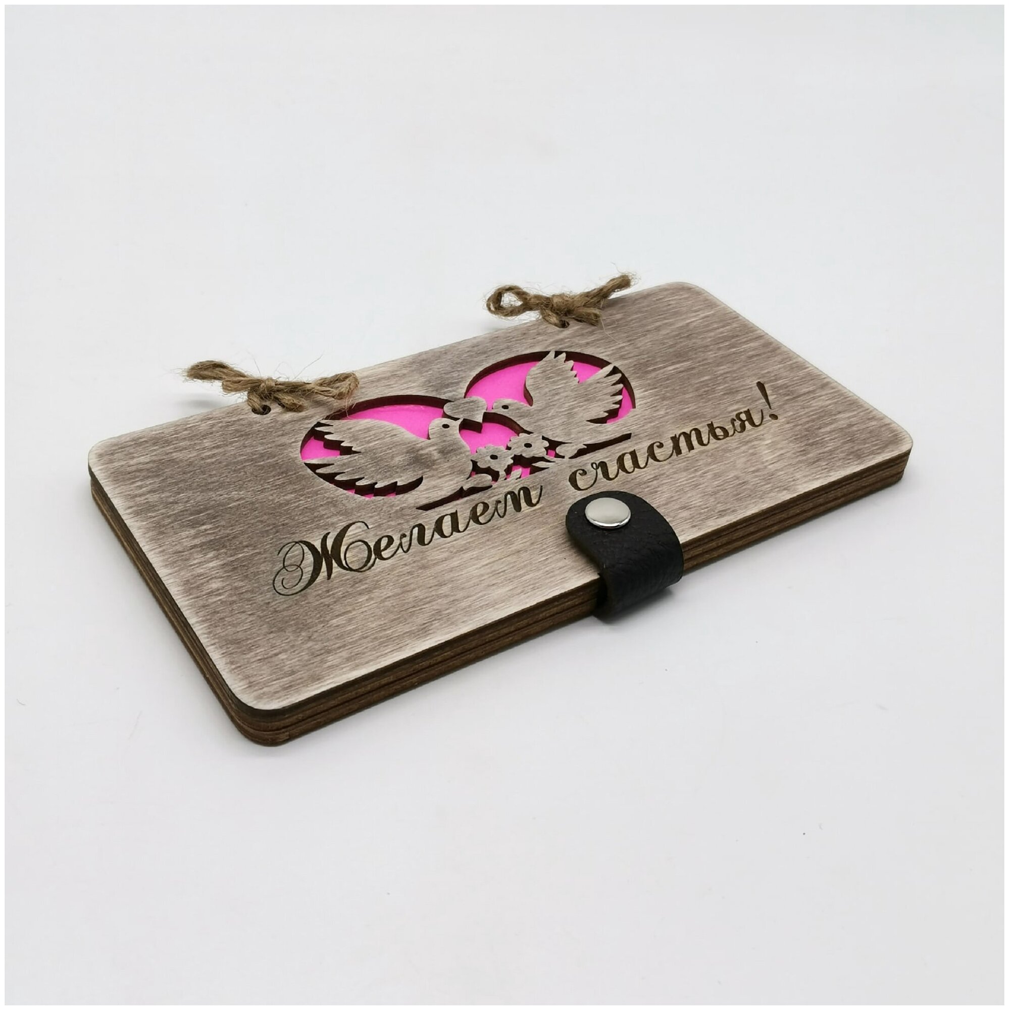 Подарочный конверт для денег деревянный (купюрница) на свадьбу "Счастливой семейной жизни"