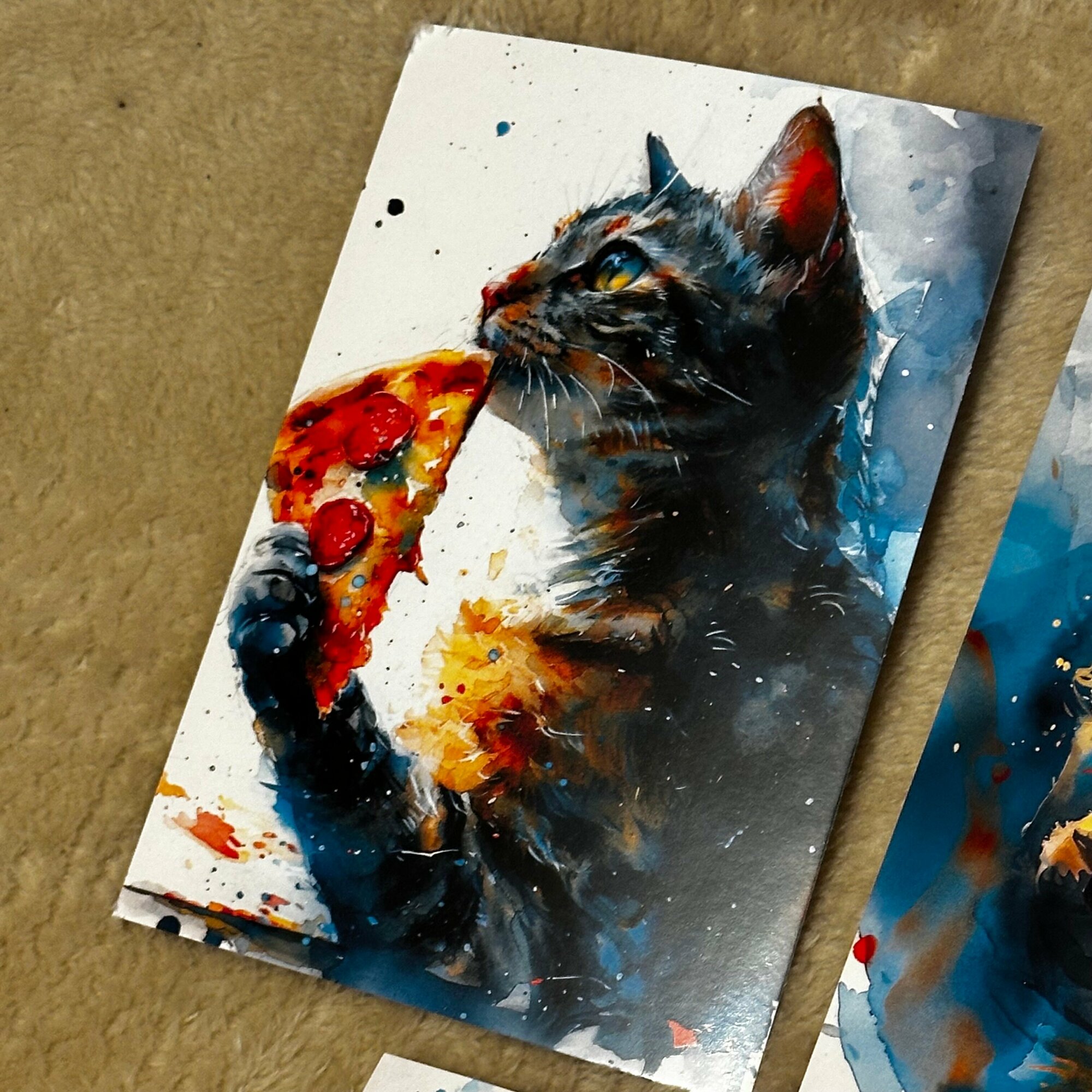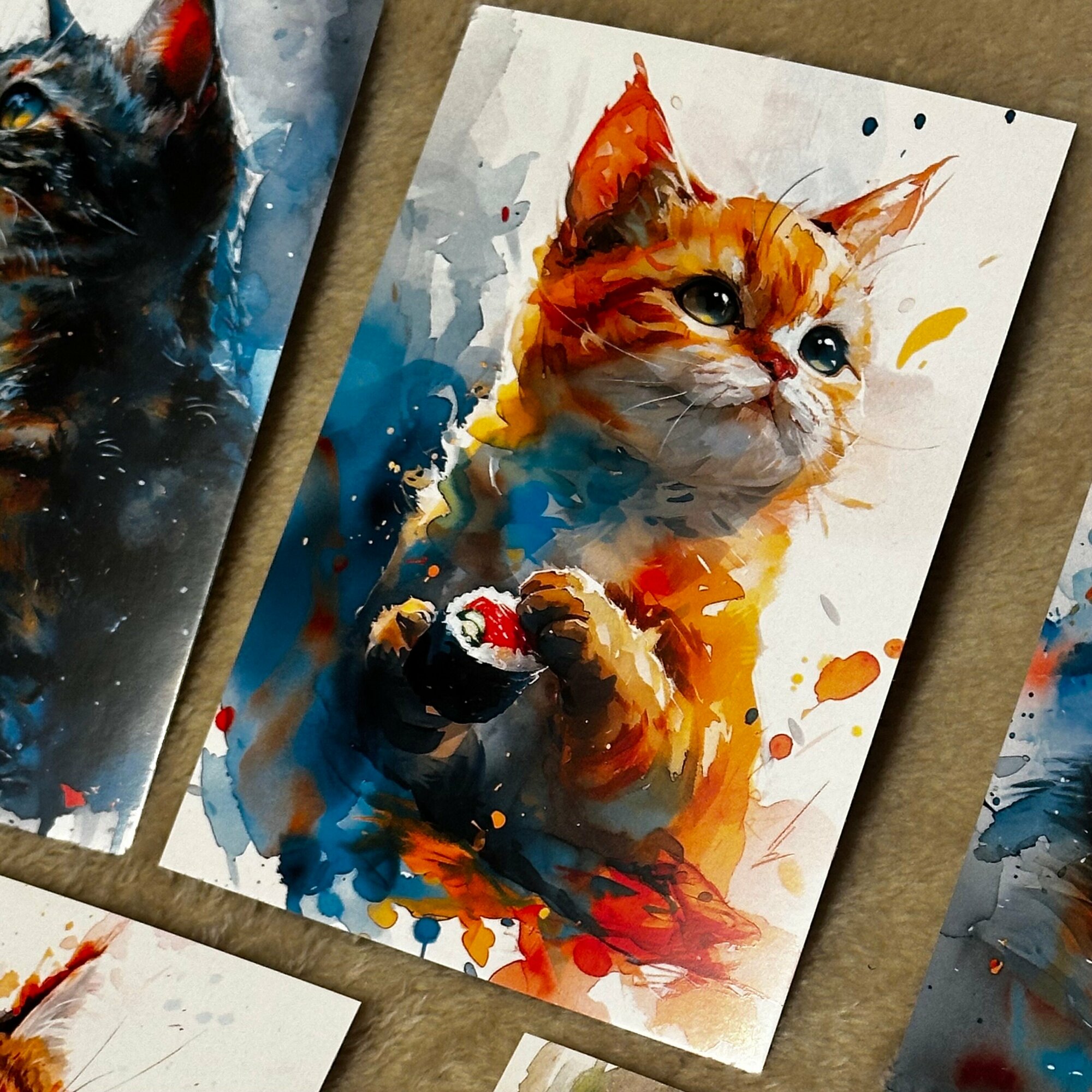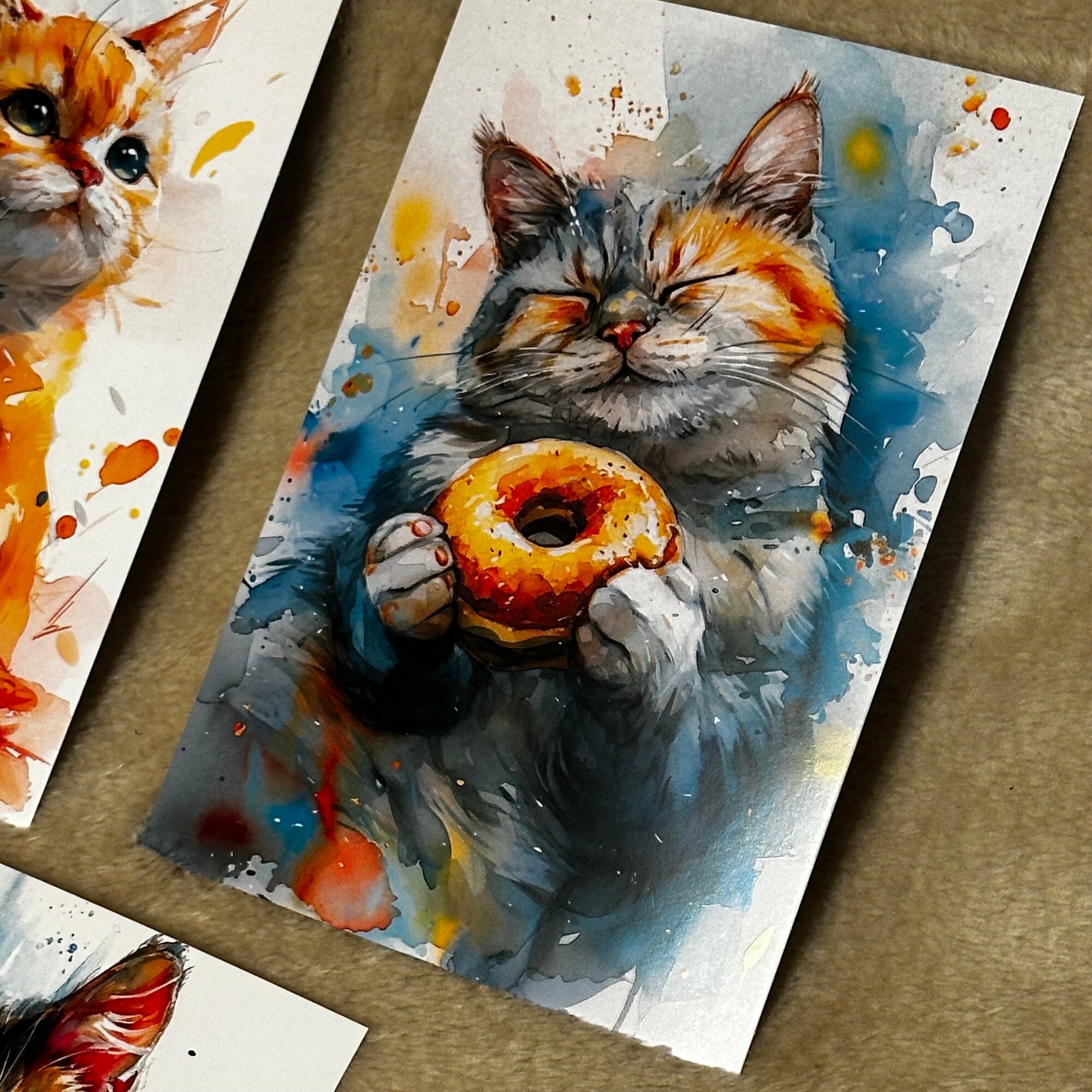 Купить Котики с едой: набор из 5 открыток в акварельном стиле для друзей и посткроссинга, добрые и милые иллюстрации, мини-постеры