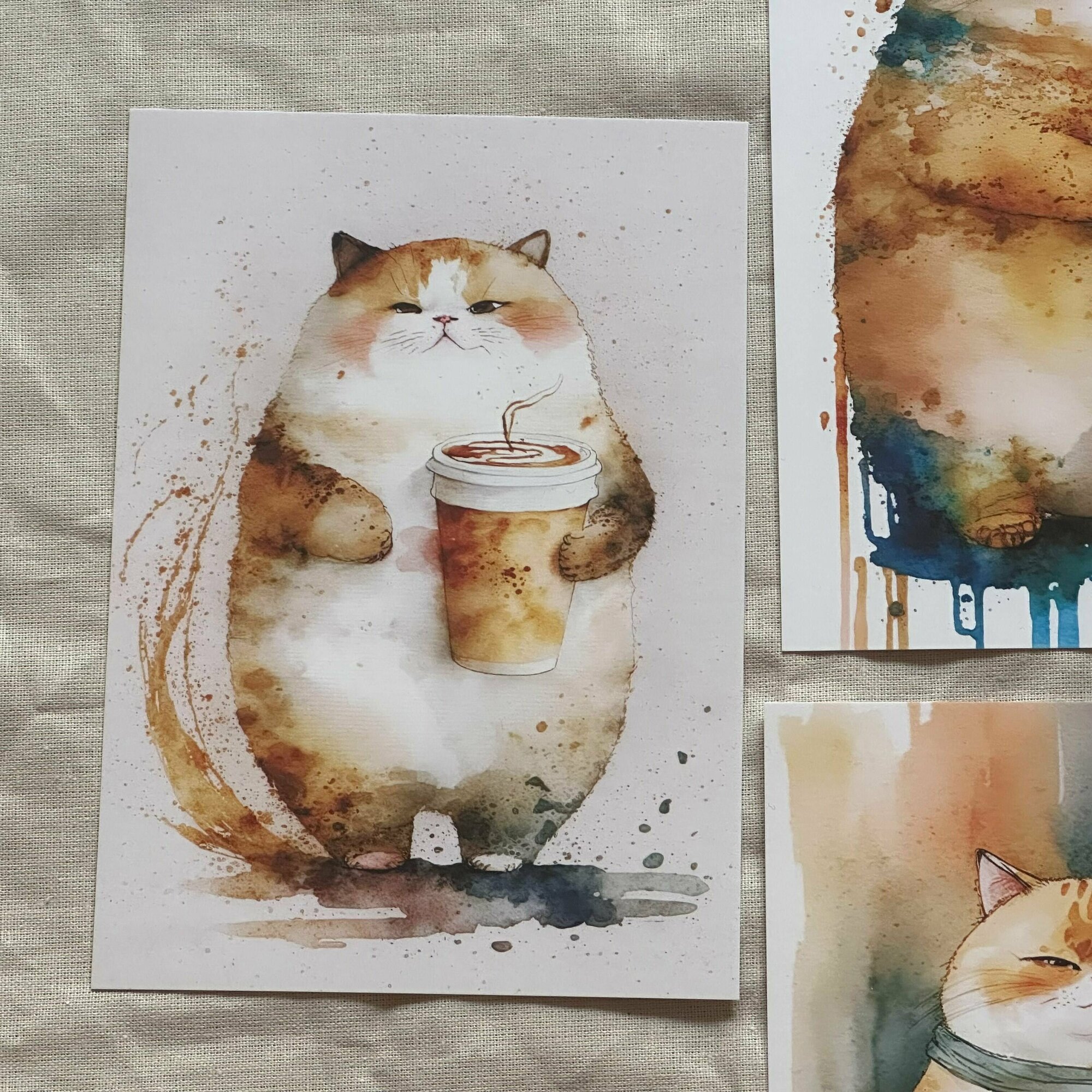 Купить "Котики пьют кофе 2", набор из 4 красивых добрых открыток для посткроссинга и поздравлений, прикольные котики, уютные мини-постеры