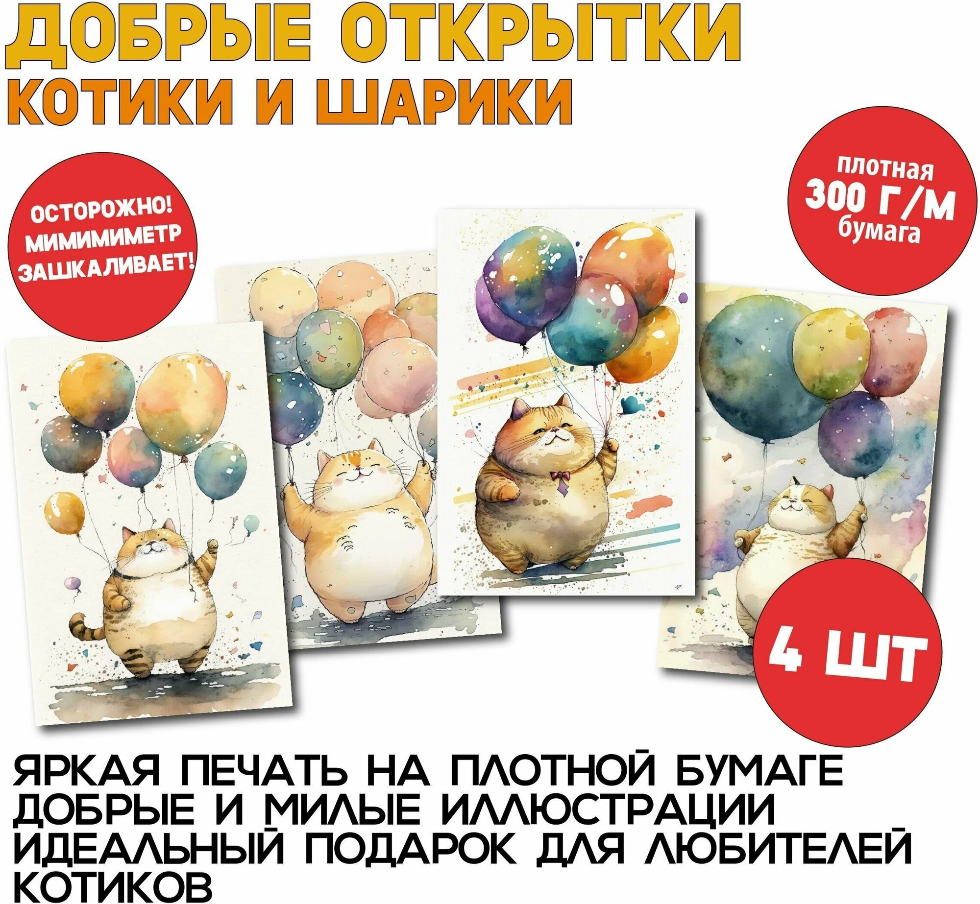 Купить Толстые котики и их забавные шарики: 4 открытки для посткроссинга и поздравлений