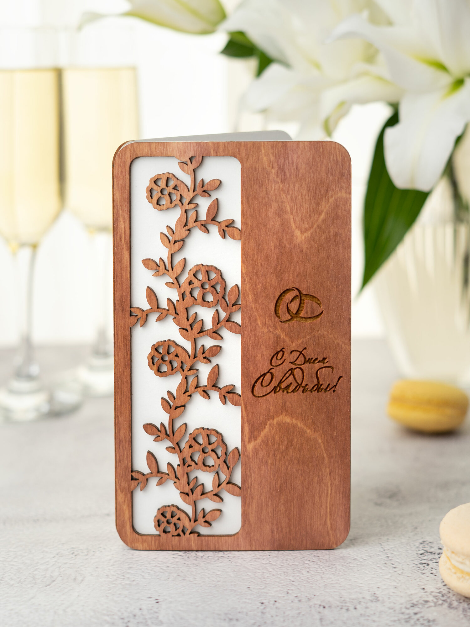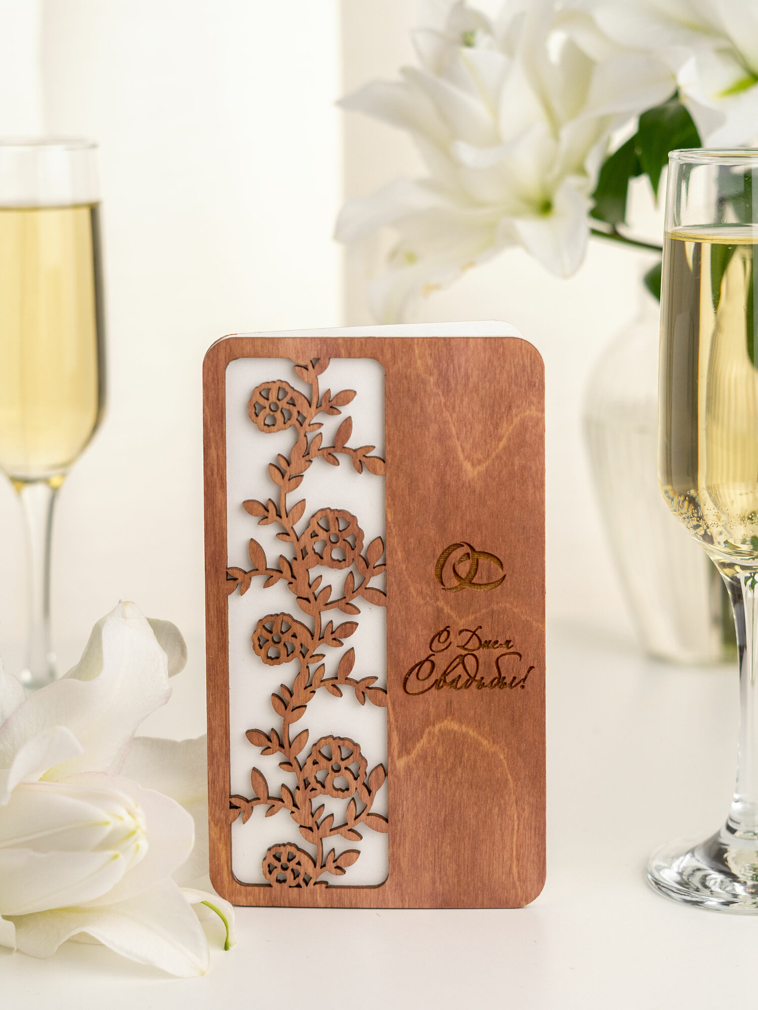 Открытка для денег на свадьбу, 17х10 см, дерево