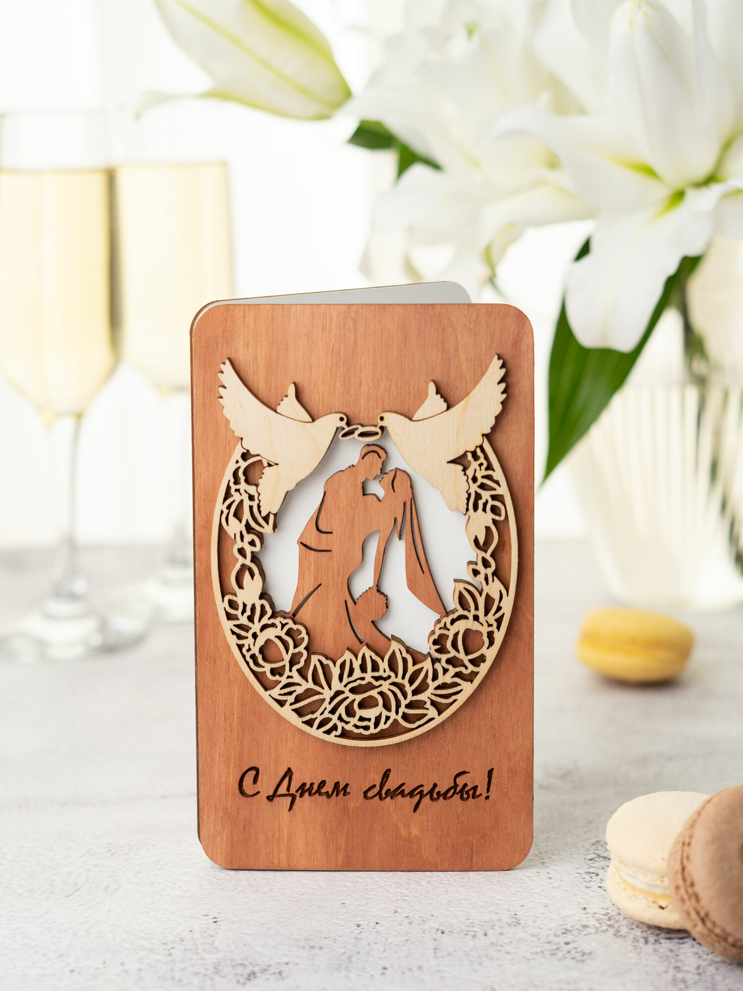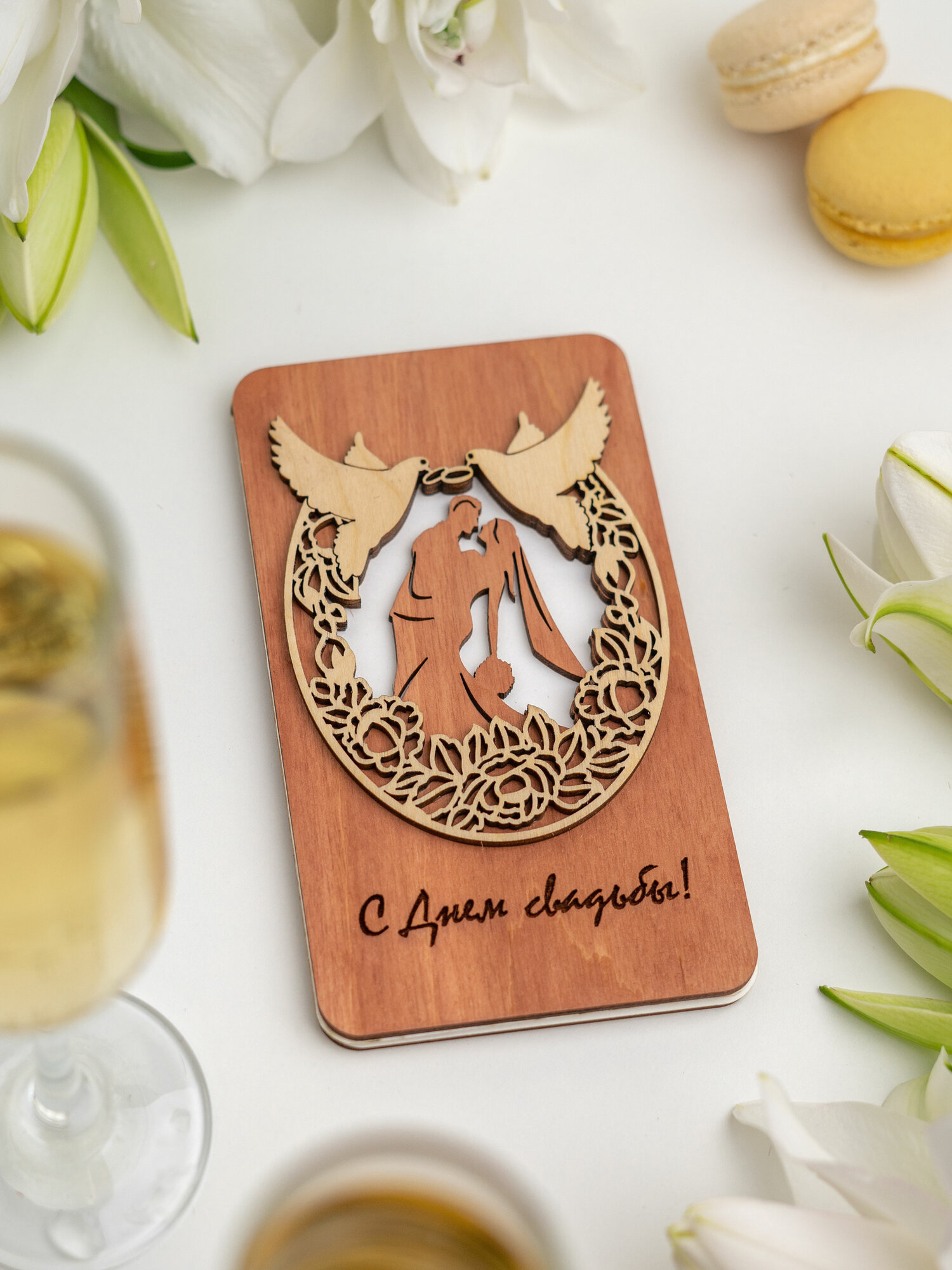 | Подробная комплектация | Деревянная открытка из дерева без надписи внутри |