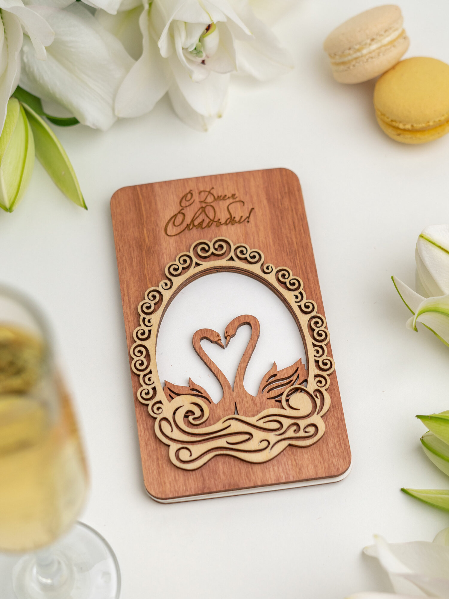 | Подробная комплектация | Деревянная открытка из дерева без надписи внутри |
