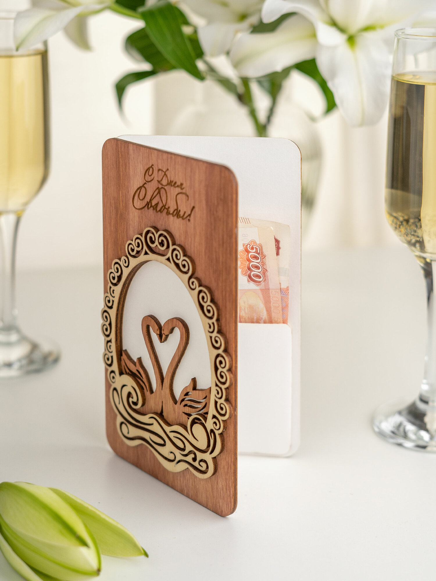 Открытка на годовщину свадьбы l Деревянная открытка для денег l Конверт для денег на свадьбу