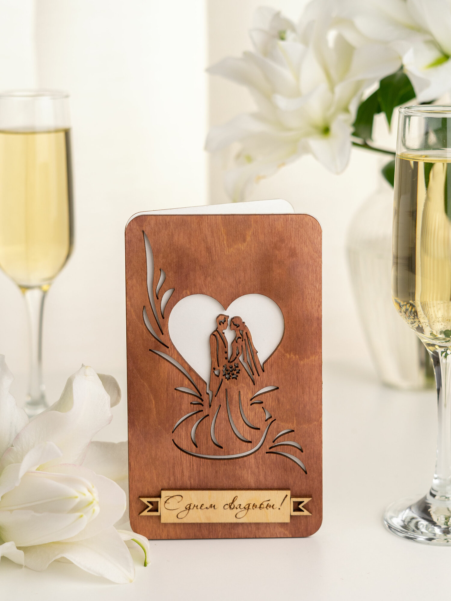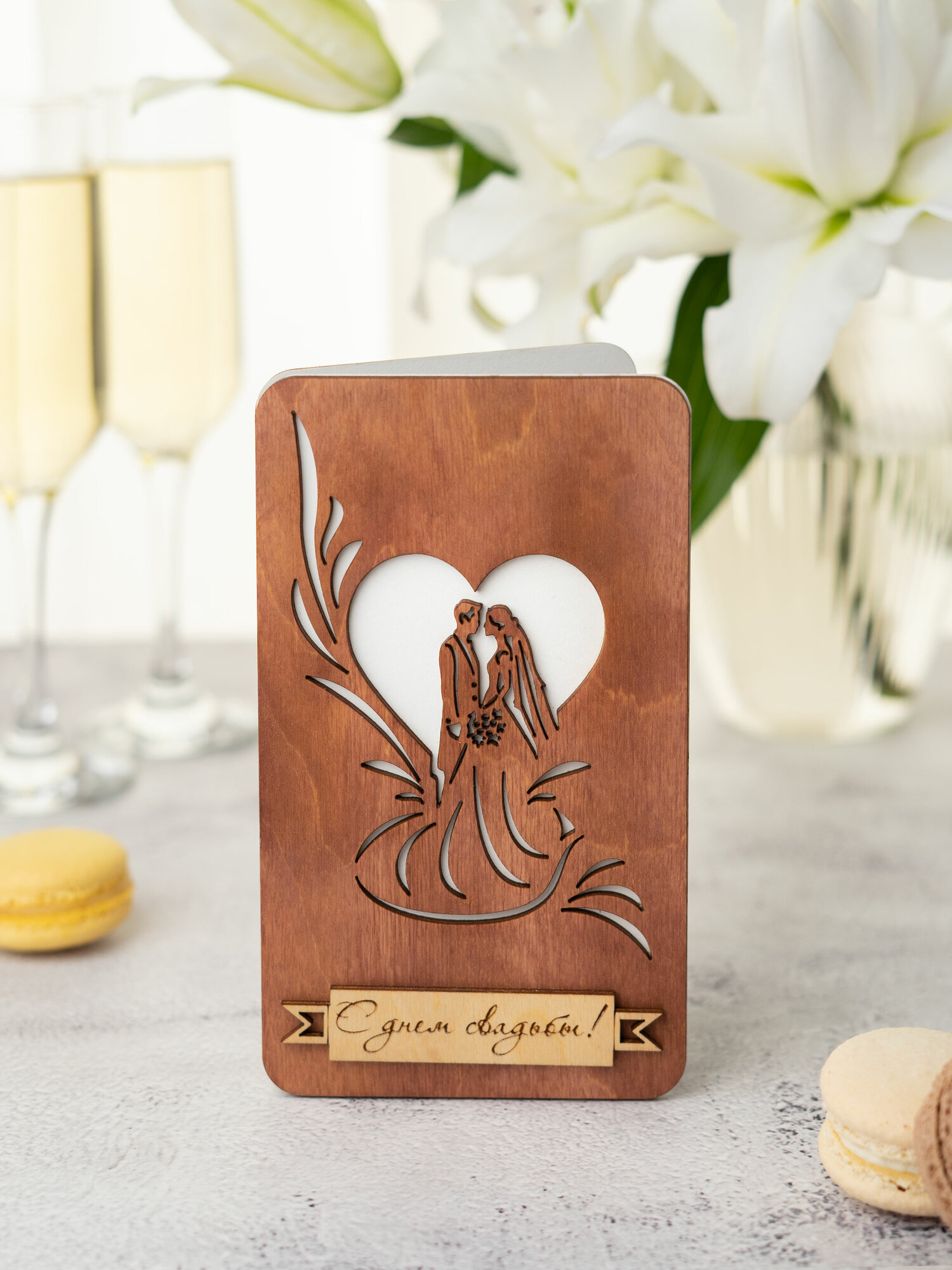 Открытка для денег на свадьбу, 17х10 см, дерево
