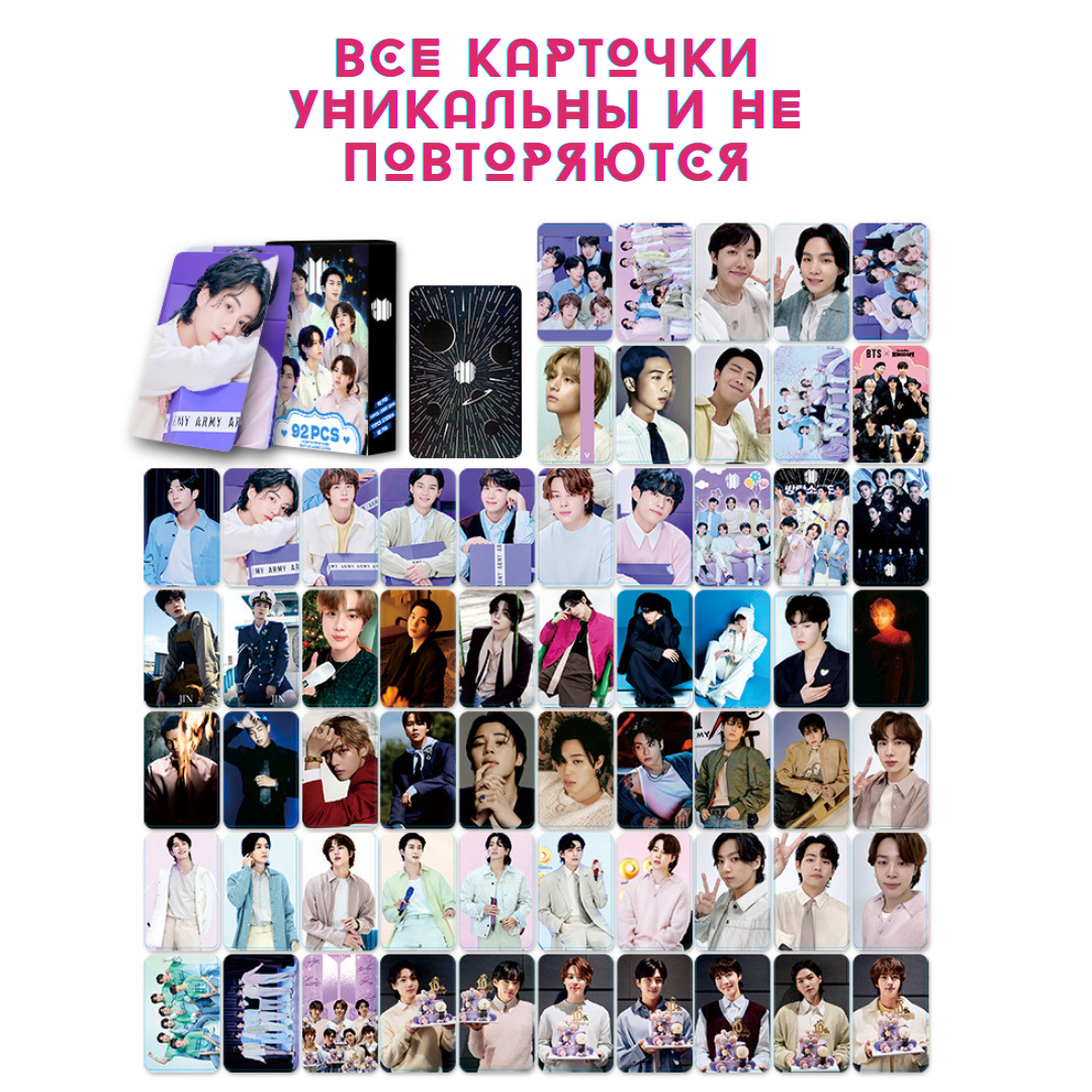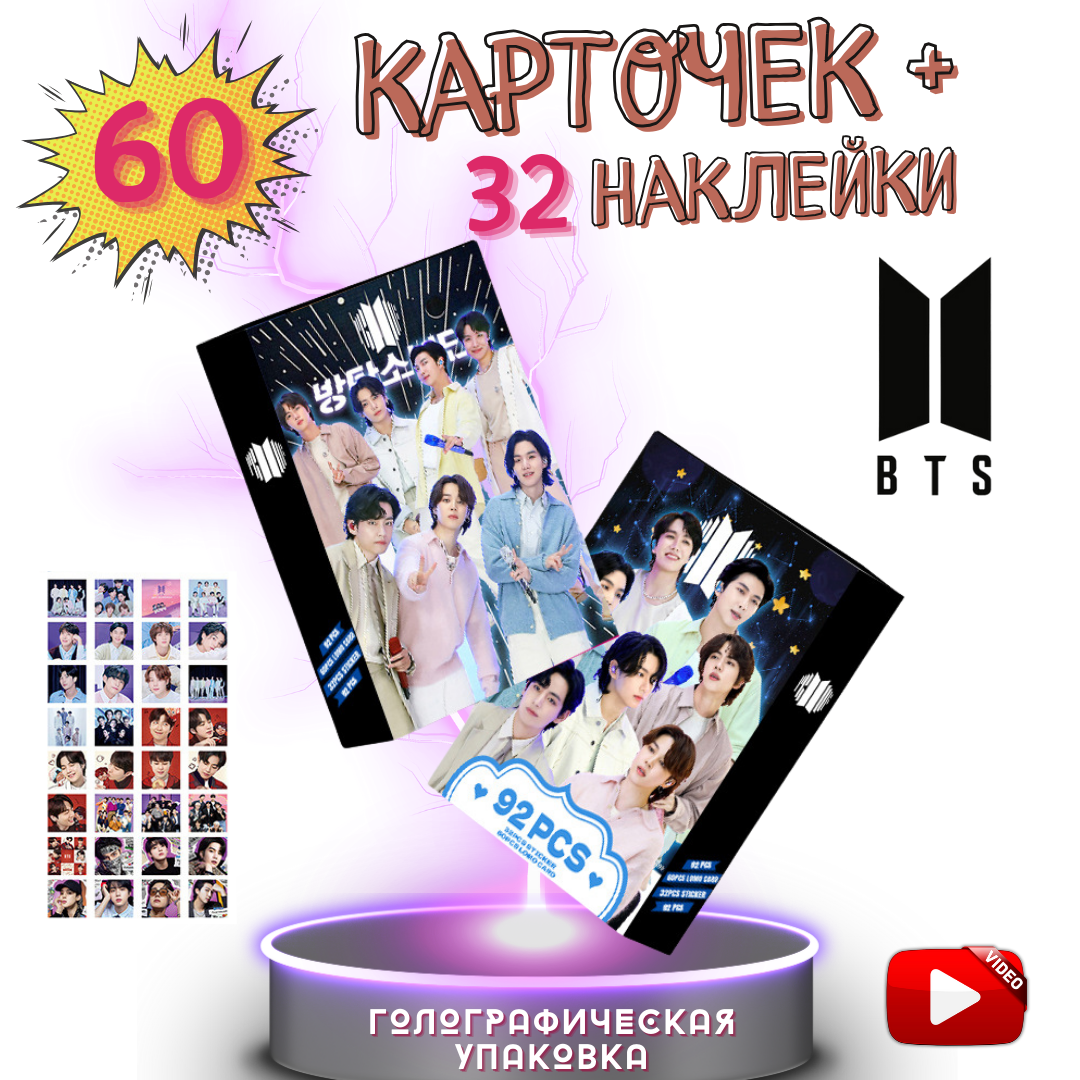 Набор карточек с наклейками, BTS, 92 предмета (60 карточек и 32 наклейки) интересное: