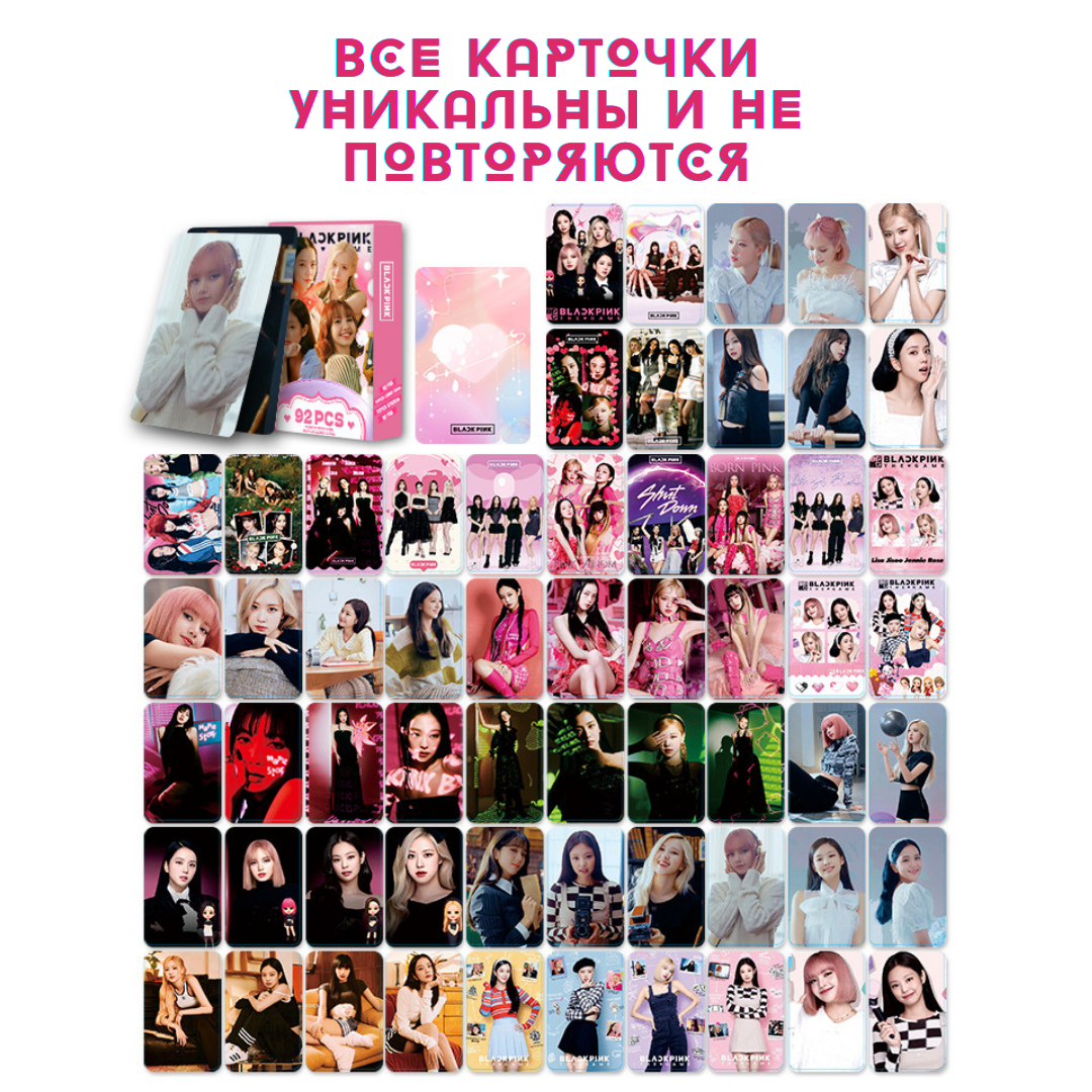 Карточки Блэкпинк с наклейками, Black Pink, 92 предмета (60 карточек и 32 наклейки) интересное: