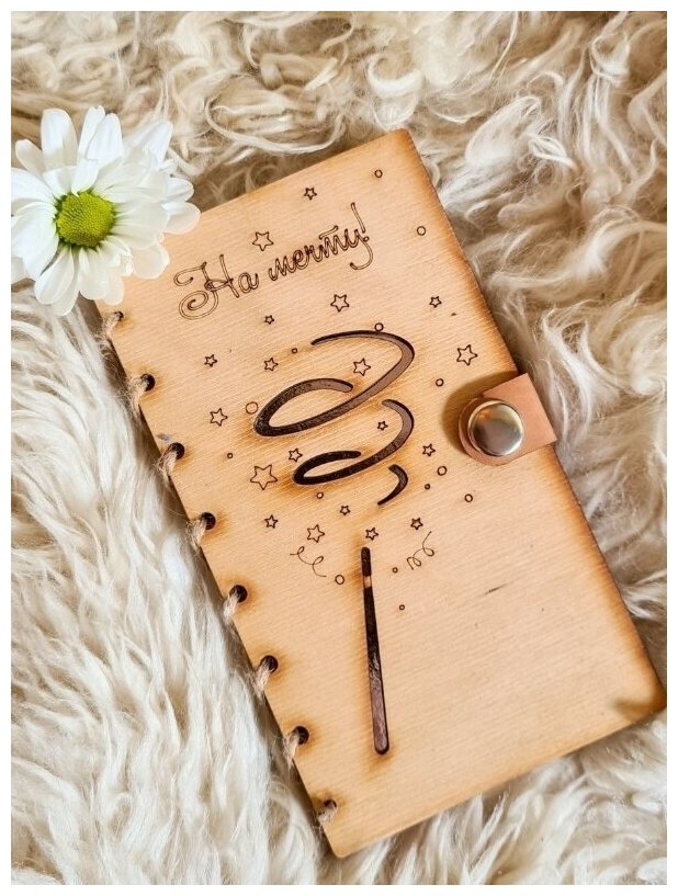 Деревянная открытка "На мечту!" Bukovko на кнопке с кожаным ярлыком / подарочная открытка на свадьбу / конверт для денег на день Рождения, юбилей интересное: