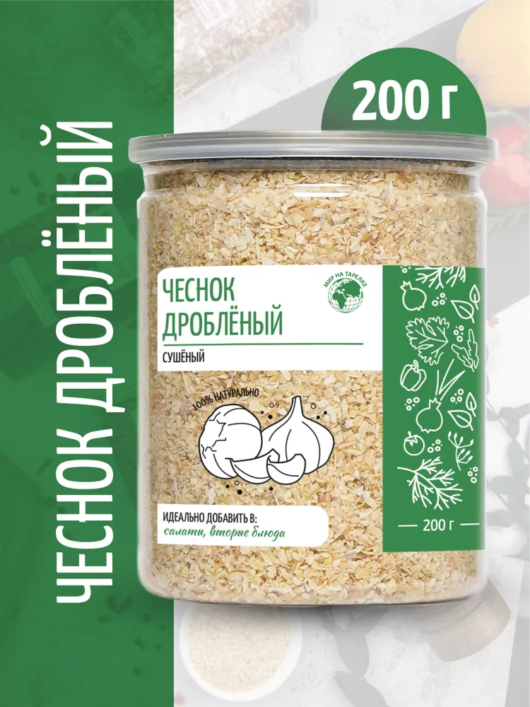Чеснок сушеный молотый гранулированный премиум, без добавок, Мир на Тарелке, чеснок натуральный, 200г интересное: