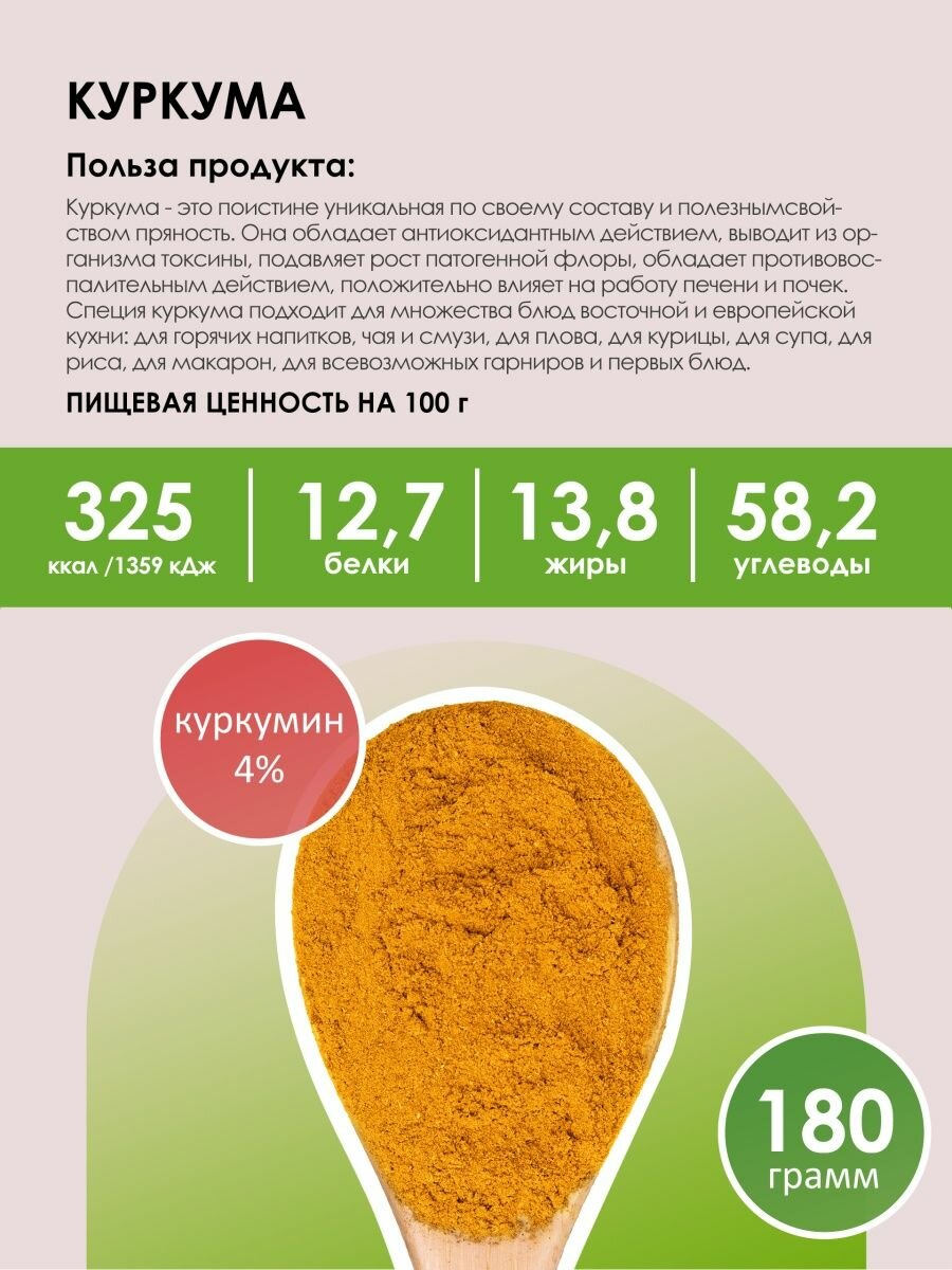 Ниже Вы можете прочитать отзывы на Куркума молотая Индия приправа 180г, ознакомится с подробными характеристиками, посмотреть интересные обзоры и фотографии на Куркума молотая Индия приправа 180г.