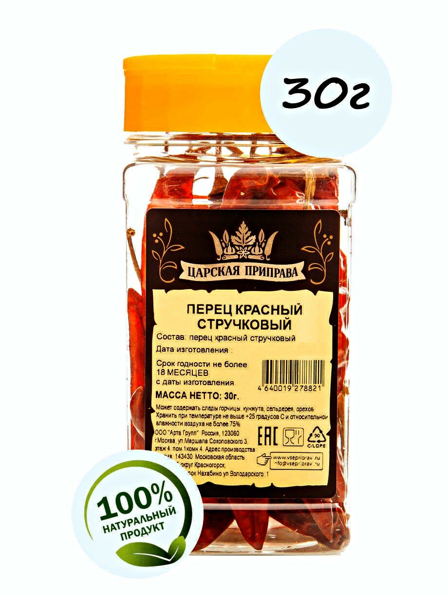 Купить Перец красный стручковый острый жгучий натуральный Царская приправа 30 г