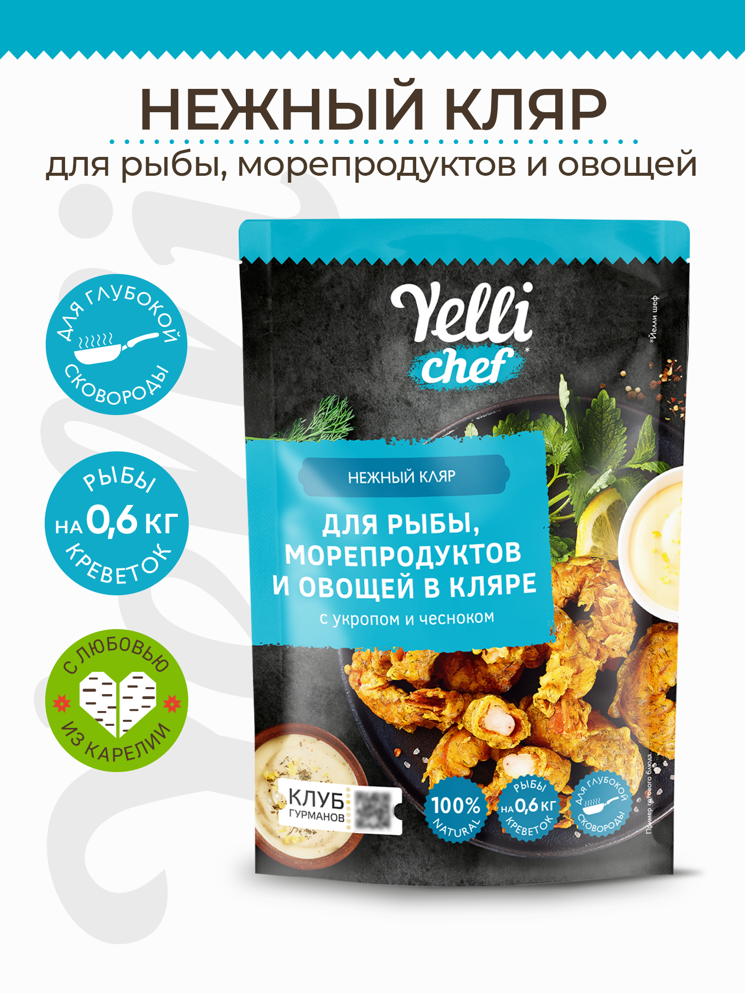Ниже Вы можете прочитать отзывы на Нежный кляр для рыбы, морепродуктов и овощей в кляре с укропом и чесноком Yelli chef 200г, ознакомится с подробными характеристиками, посмотреть интересные обзоры и фотографии на Нежный кляр для рыбы, морепродуктов и овощей в кляре с укропом и чесноком Yelli chef 200г.