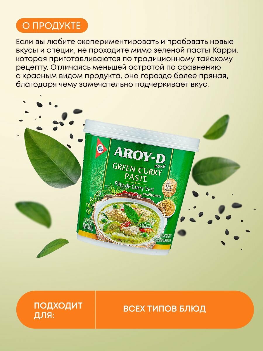 Aroy-D Паста Карри зелёная, 400 г, 400 мл, банка пластиковая интересное: