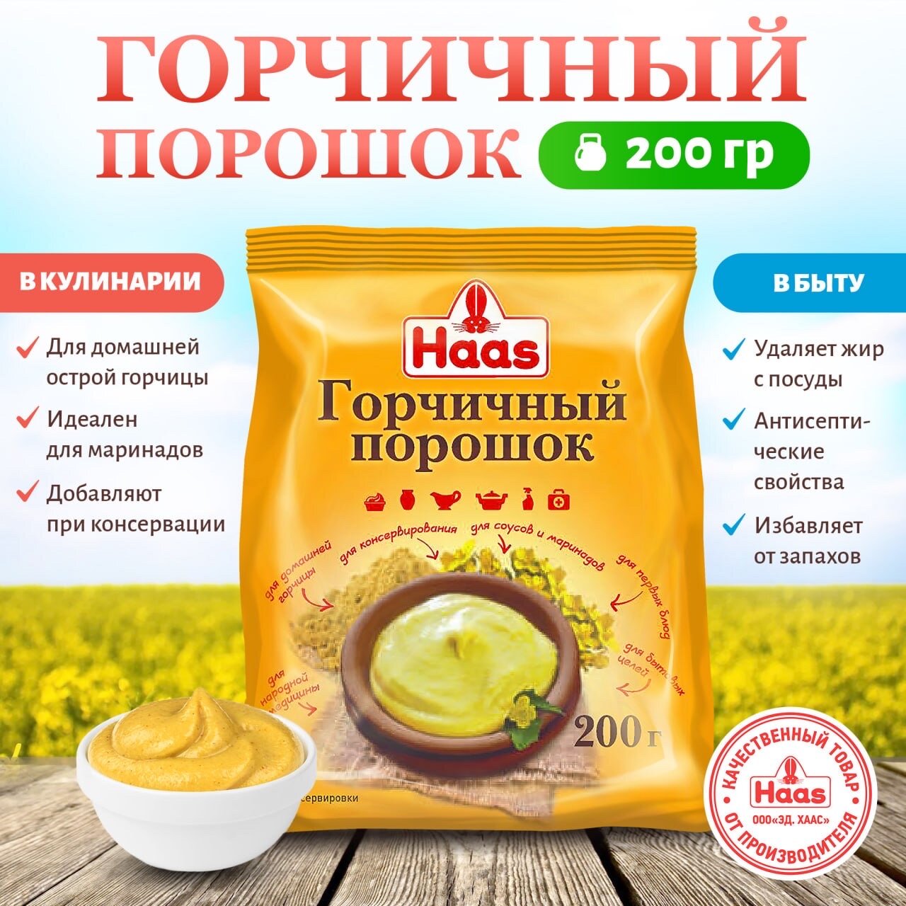 ХААС Горчичный Порошок 200г, молотый порошок для мяса, птицы и рыбы, удобная упаковка