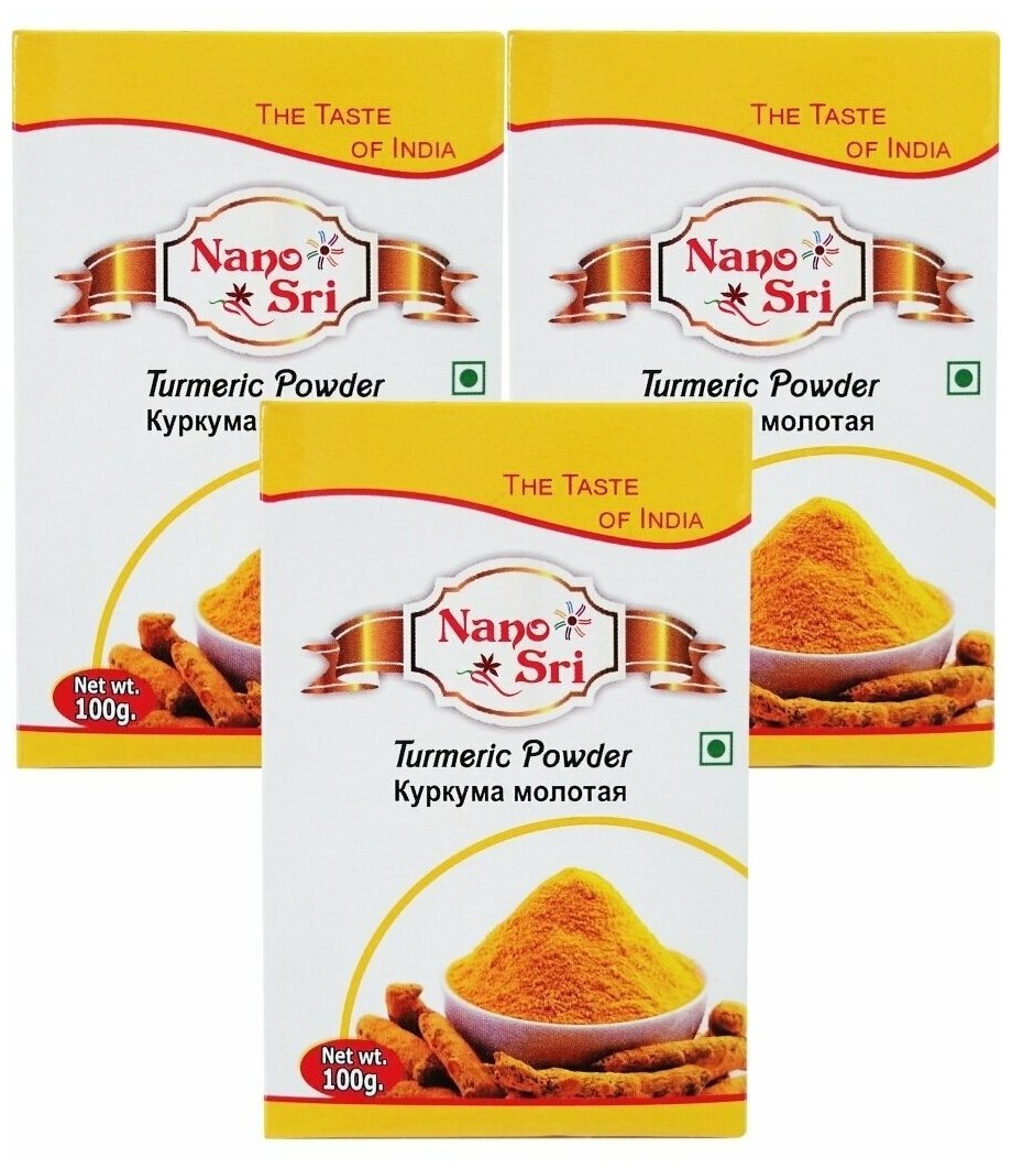 Куркума молотая 3 шт по 100 гр Turmeric powder Нано Шри (Nano Sri) (Индия) интересное: