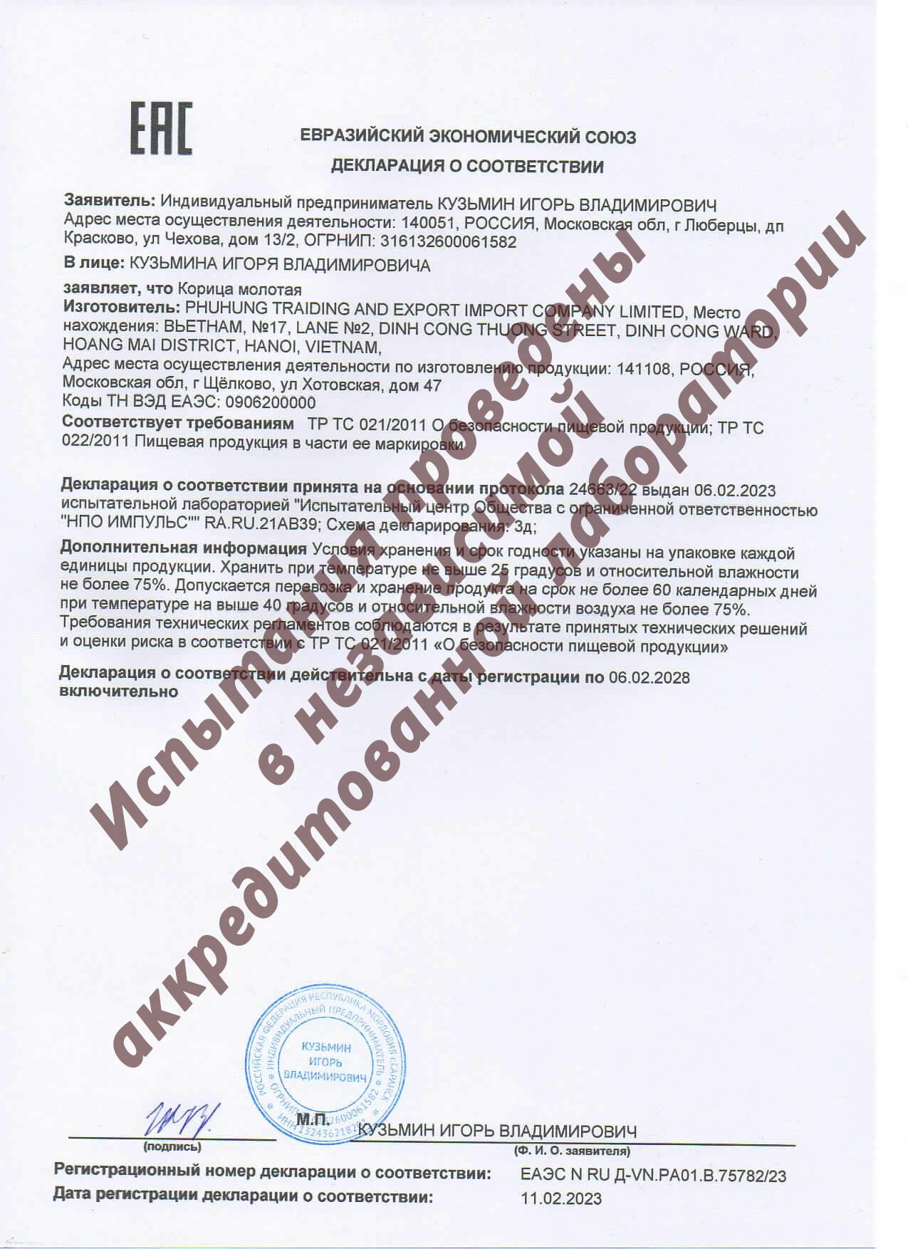 | Состав | Корица молотая высший сорт - 100% |