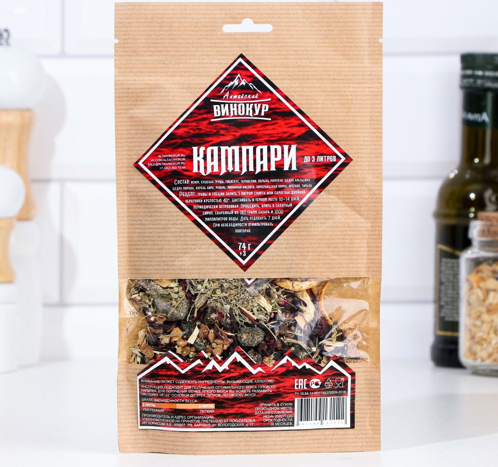 Набор трав и специй для домашних настоек на самогоне "Алтайский Винокур", Кампари
