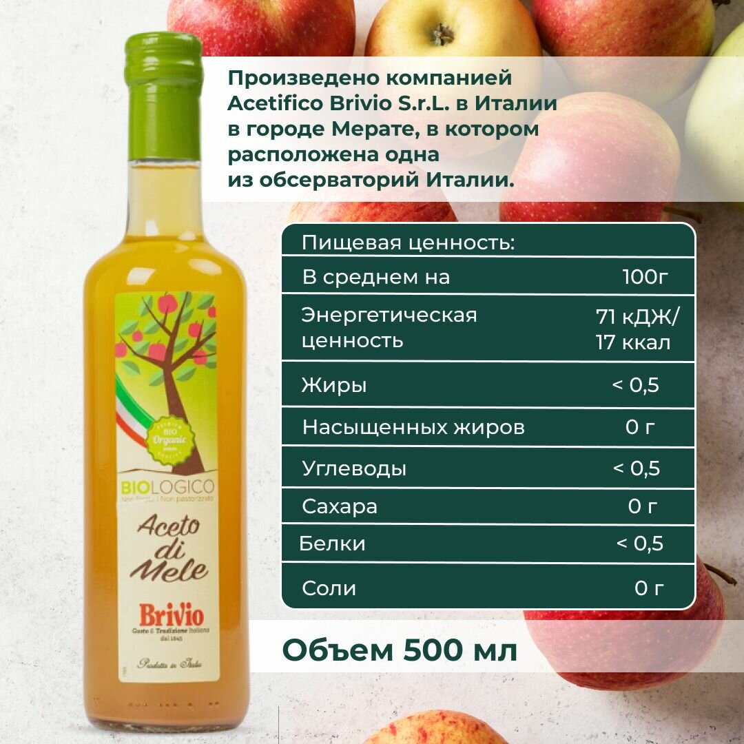 Купить Brivio яблочный уксус Натуральный, Нефильтрованный 500 мл.Стекло